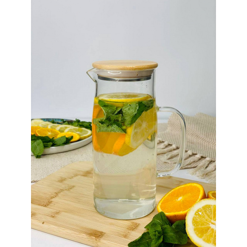 Глек скляний з бамбуковою кришкою 1500 мл Арроу-бамбо Olens 102-722