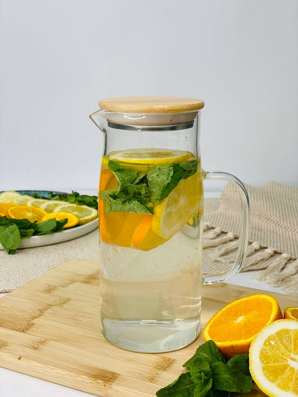 Детальні характеристики Глек скляний з бамбуковою кришкою 1500 мл Арроу-бамбо Olens 102-722.