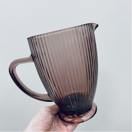 Глечик скляний 1,1 л Турмалін Versailles VS-P1100TD рожевий Характеристика: Вид: Глечик Матеріал: Скло Об'єм: 1,1 л Колір: Рожевий Призначення: Для напоїв Висота: 18,5 см Діаметр: 13 см