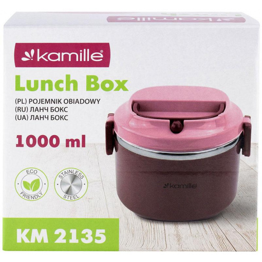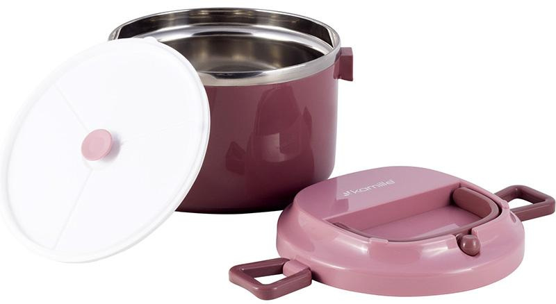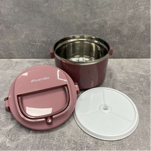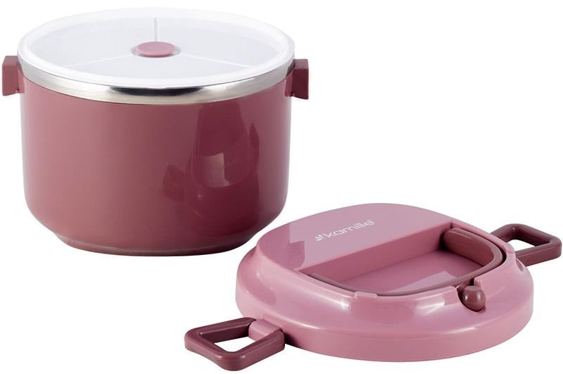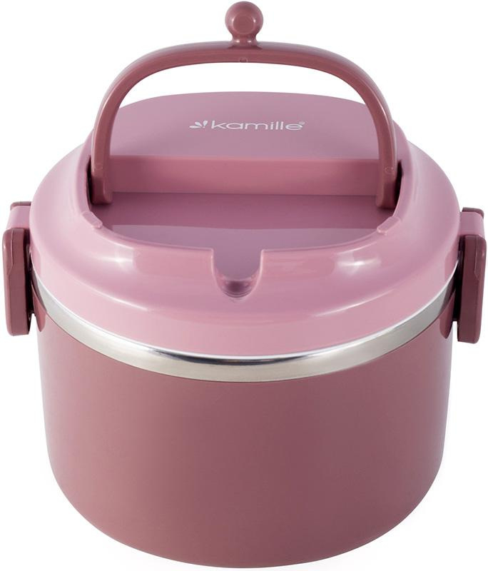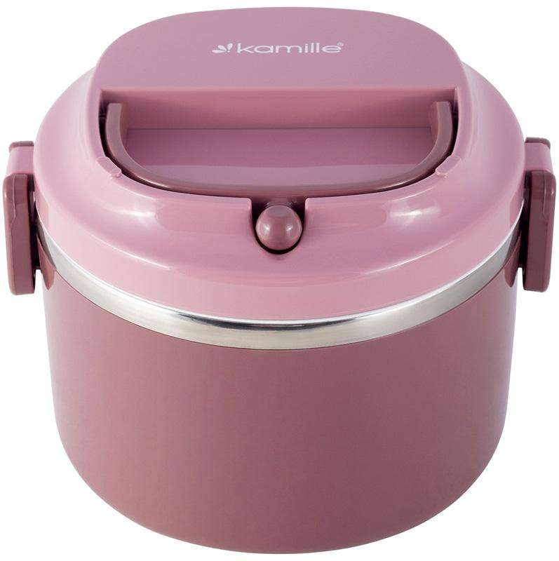 Ланч бокс пластиковий корпус внутрішня ємність нержавіюча сталь Kamille рожевий KM-2135