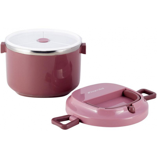 Ланч бокс пластиковий корпус внутрішня ємність нержавіюча сталь рожевий KM-2135