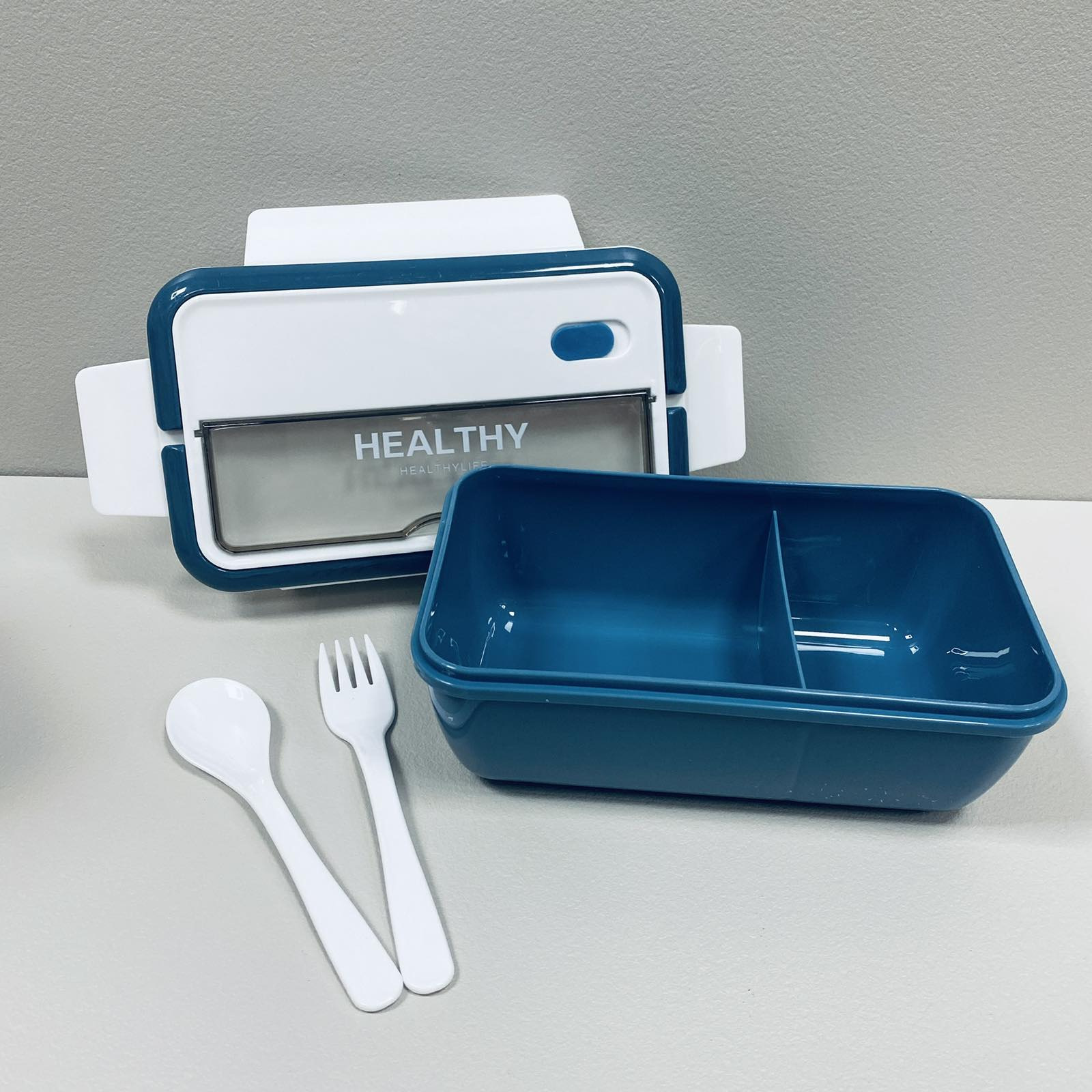 Ланч бокс пластиковий зі столовими приборами з двома відділами A-Plus 3036 синій з білим Виготовлений з високоякісного пластику. В комплекті йдуть столові прибори (ложка та виделка). Характеристика: Вид: Ланч бокс Матеріал: Пластик Колір: Синій з білим Комплектація: Ланч бокс, ложка, виделка Розмір: 20,5*12 см Висота: 8 см Об'єм: 1100 мл