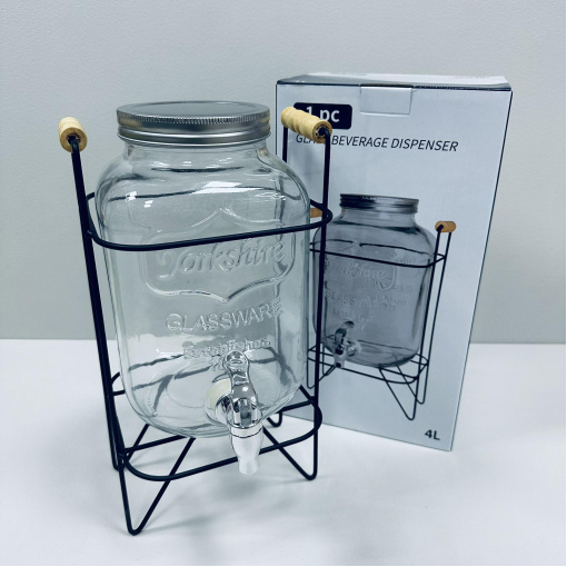 Лимонадник скляний для напоїв із металевою кришкою на підставці 4 л S&T 3423