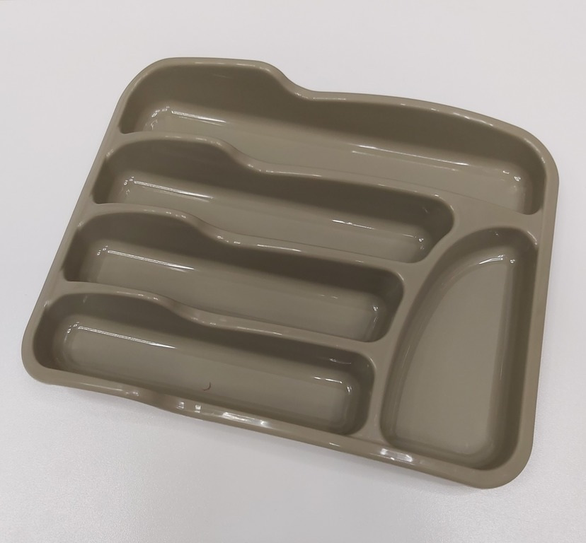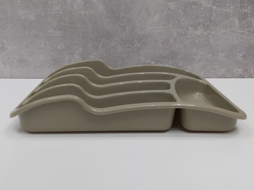 Лоток для столових приладів зі вставкою відрізняється удосконаленою конструкцією. Виріб комплектується додатковим лотком для столових приладів, формуючи 2-поверхову конструкцію. Сіро-біла колірна гама виробу доступна у 4 варіантах.  Лоток відрізняється високою якістю, доступною вартістю та відмінними експлуатаційними властивостями.