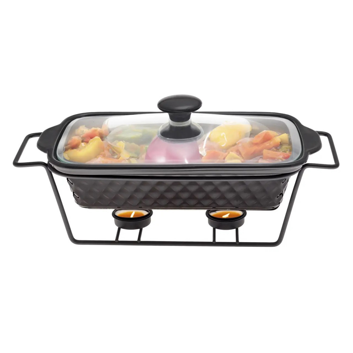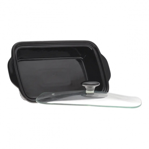 Вид: Марміт Матеріал: Кераміка Матеріал підставки: Метал Матеріал кришки: Скло Об'єм: 1,4л Розмір: 30,5*17,5*6 см Колір: Чорний