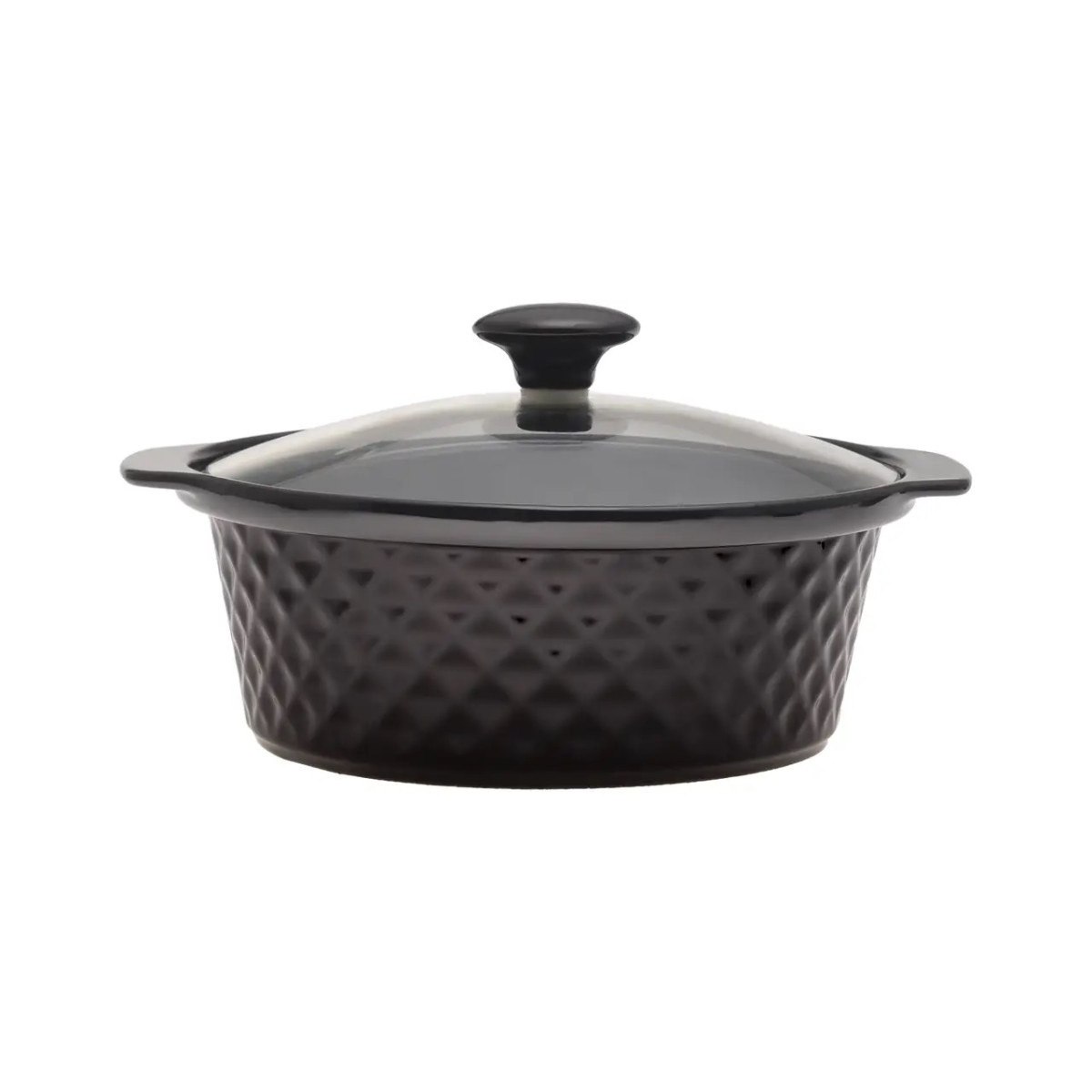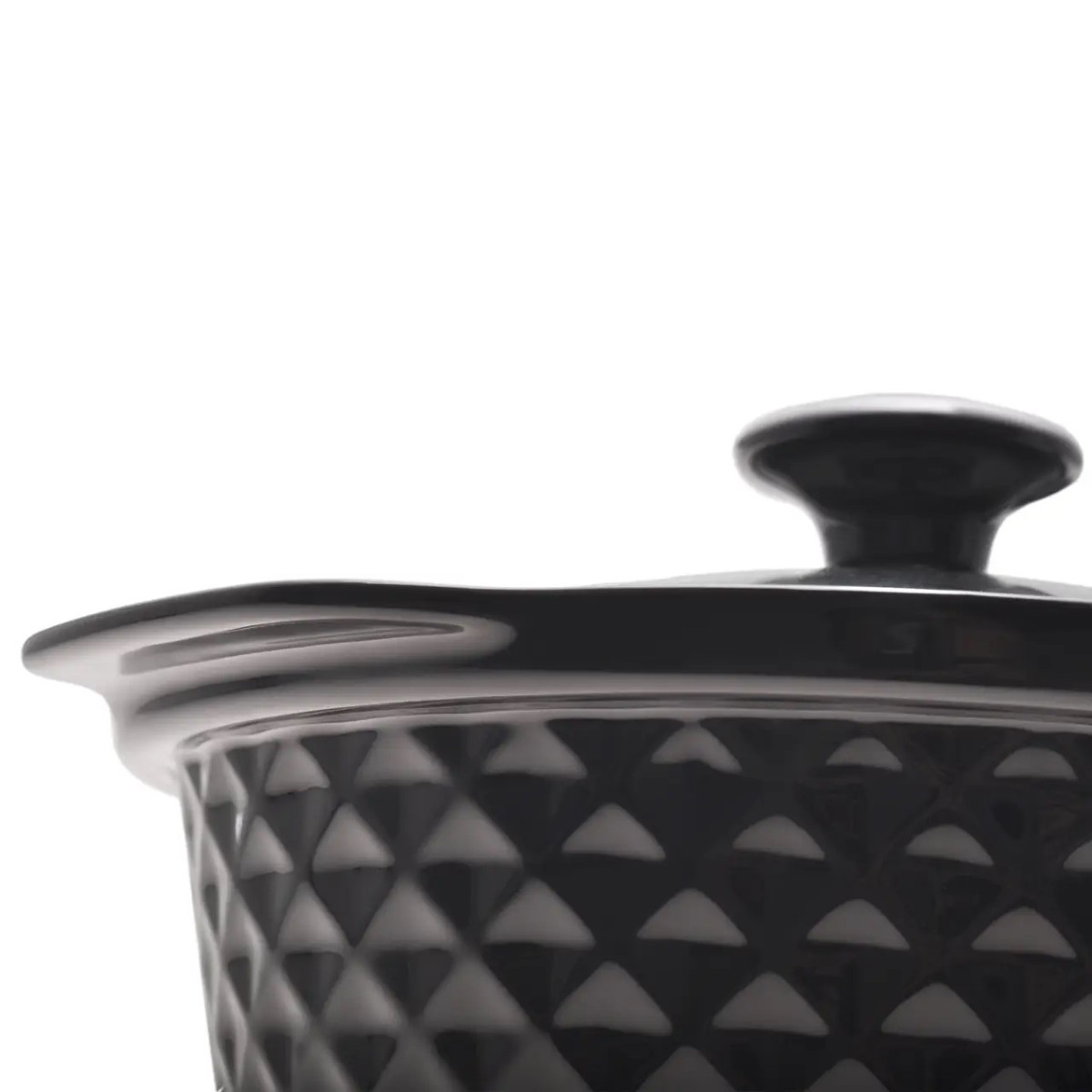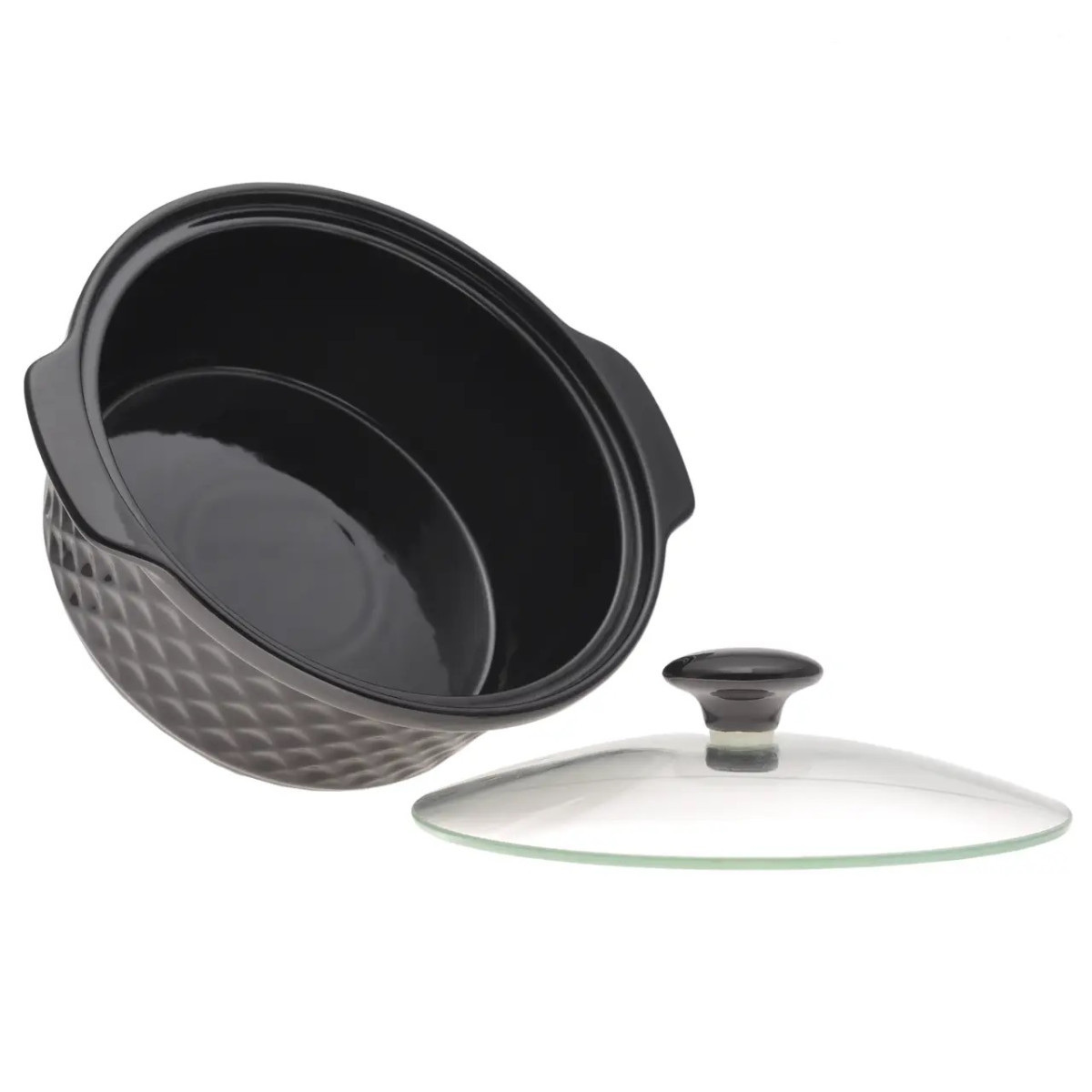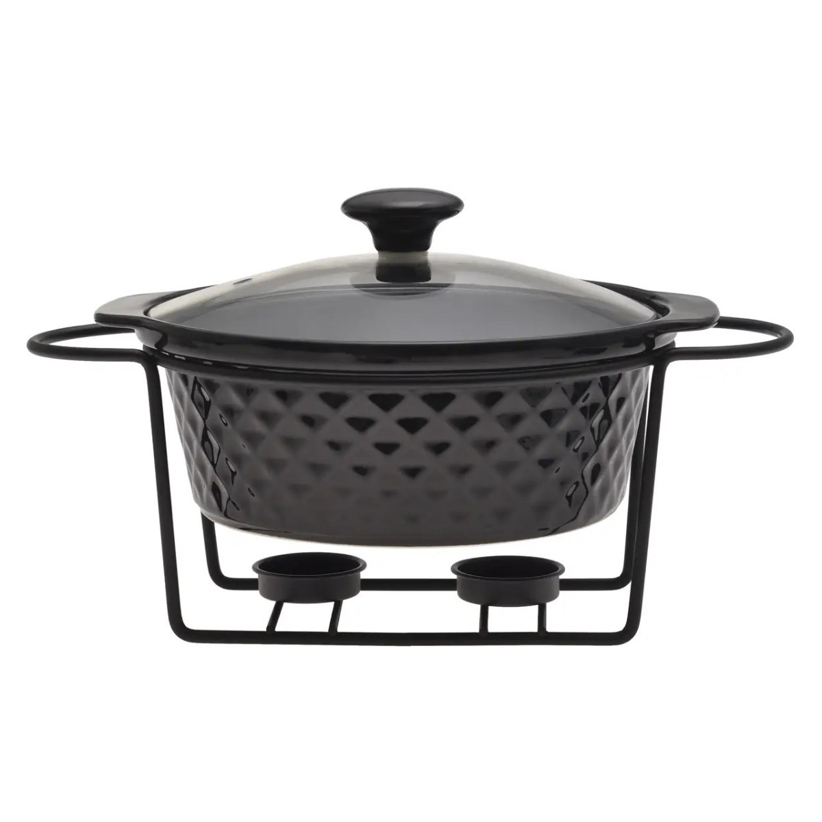 Вид: Марміт Матеріал: Кераміка Матеріал підставки: Метал Колір: Чорний Розмір: 24*21*8 см Форма: Кругла