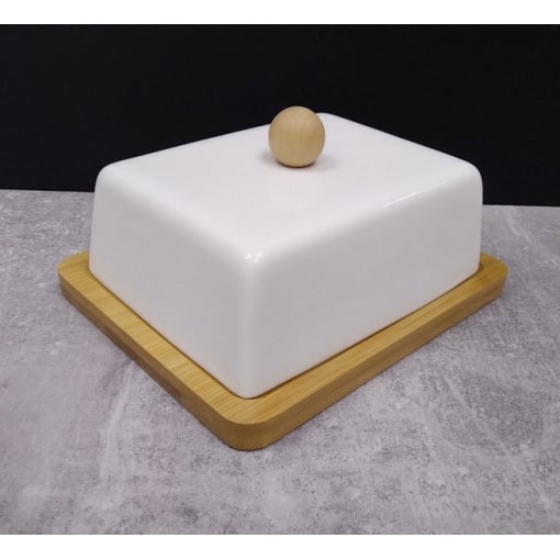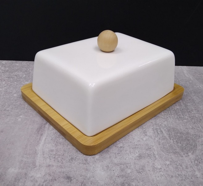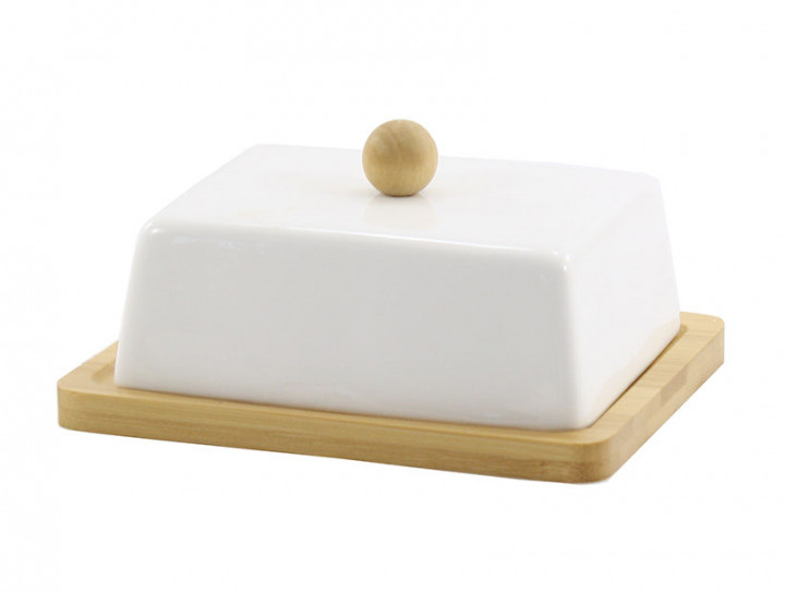 Маслянка фарфорова 15 см на бамбуковій підставці Interos PJ00686