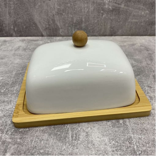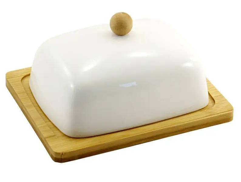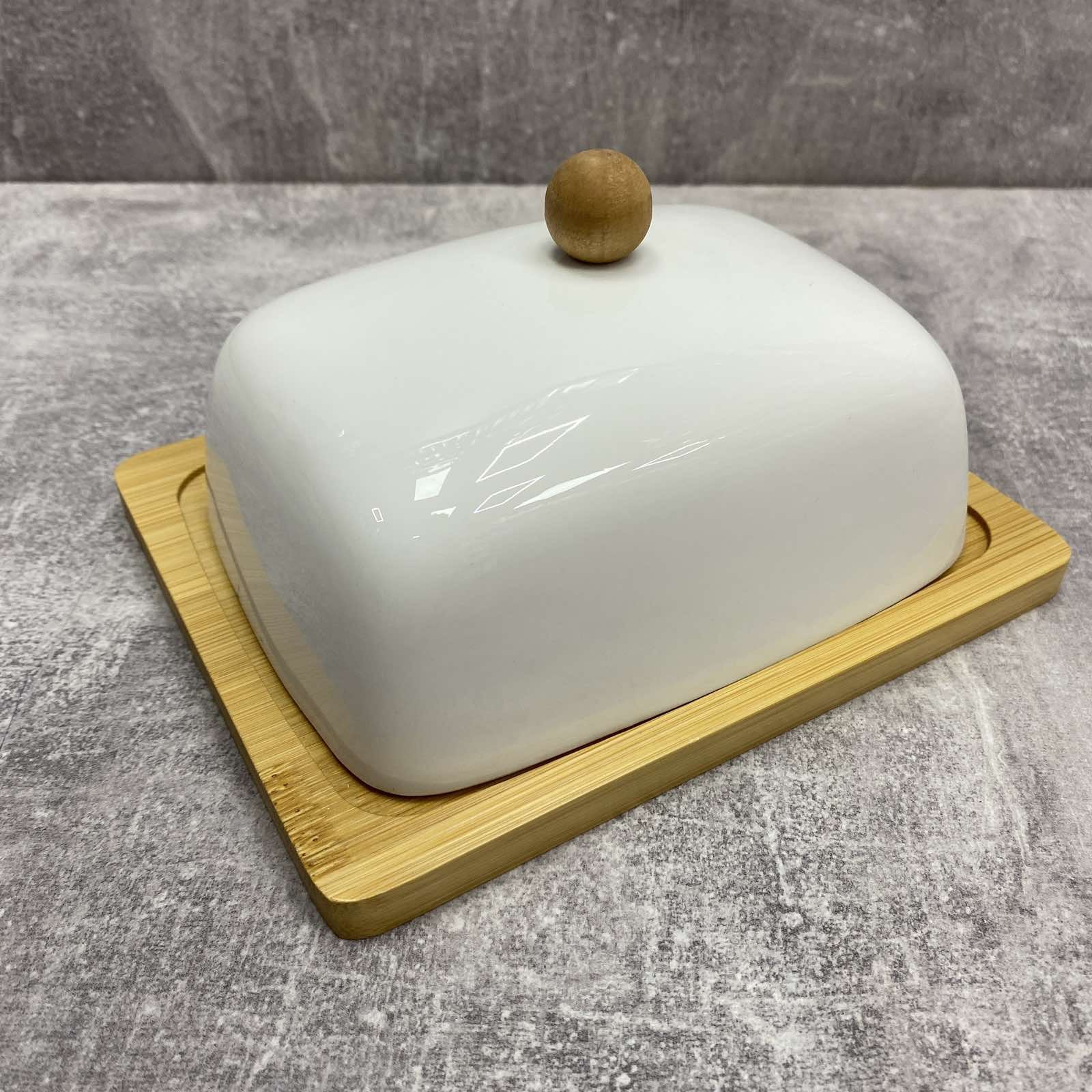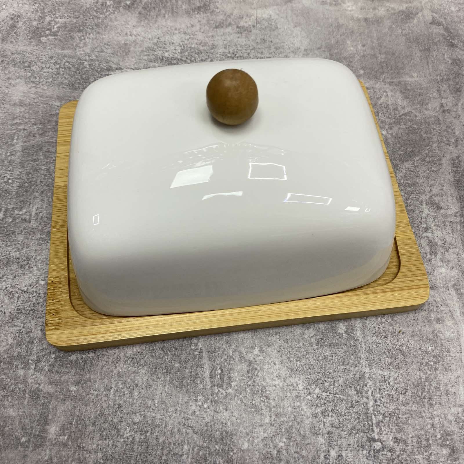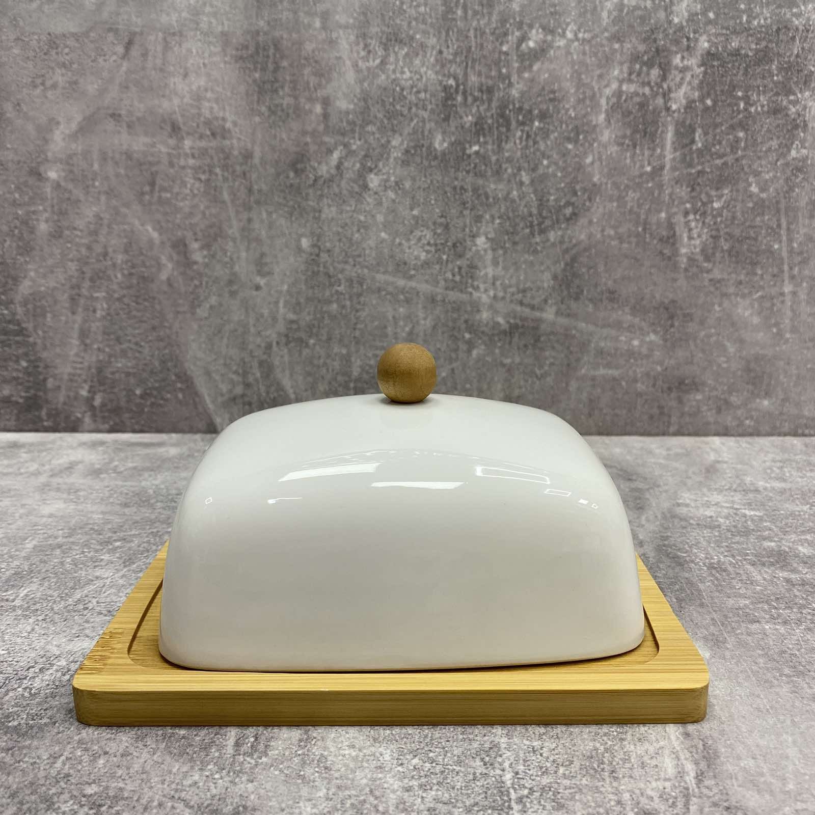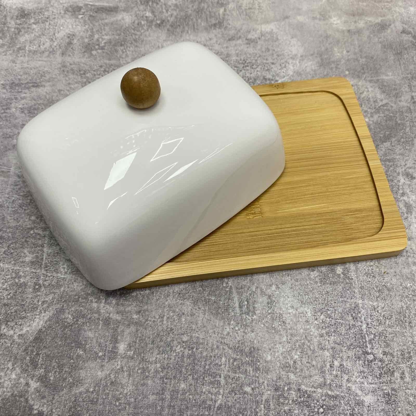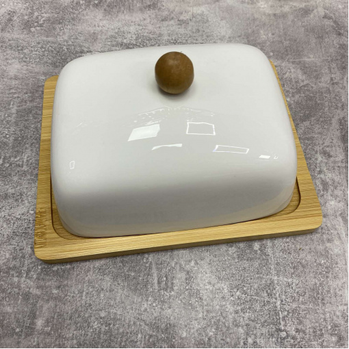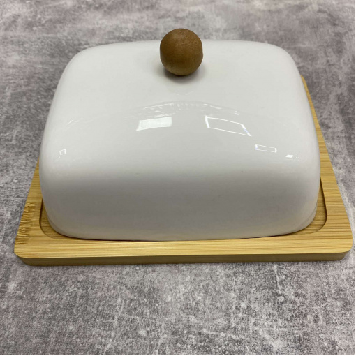 Маслянка фарфорова 16 см на бамбуковій підставці Interos PJ03430
