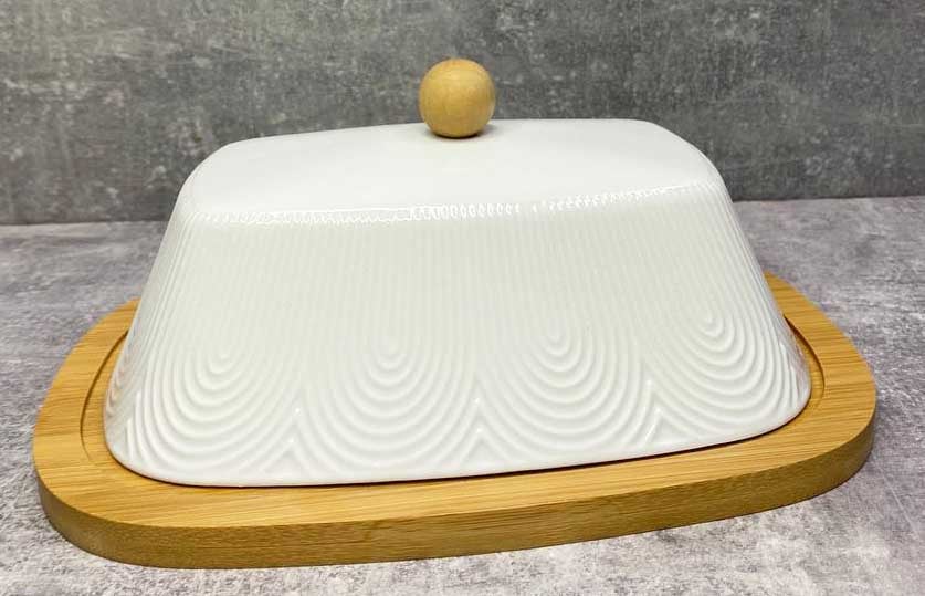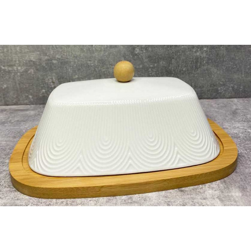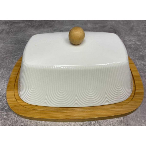 Масляна фарфорова на бамбуковій підставці Interos 20 см PJ03449