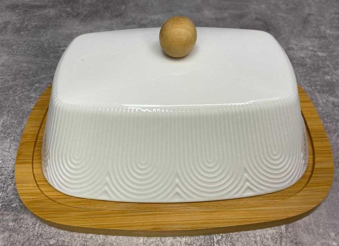 Детальні характеристики Масляна фарфорова на бамбуковій підставці Interos 20 см PJ03449.