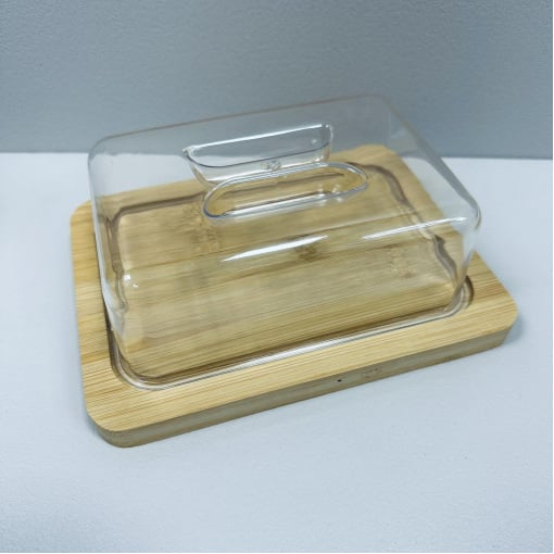 Характеристика: Вид: Масляна Призначення: Для зберігання олії Матеріал: Пластик, бамбук Розмір: 20х15х7, 5 см, кришки 16х11 см Колір: Прозорий/коричневий Форма: Прямокутна