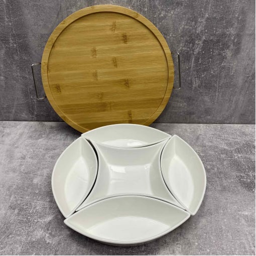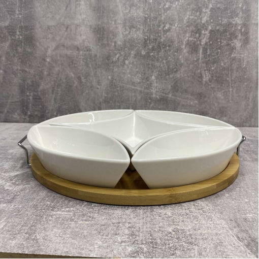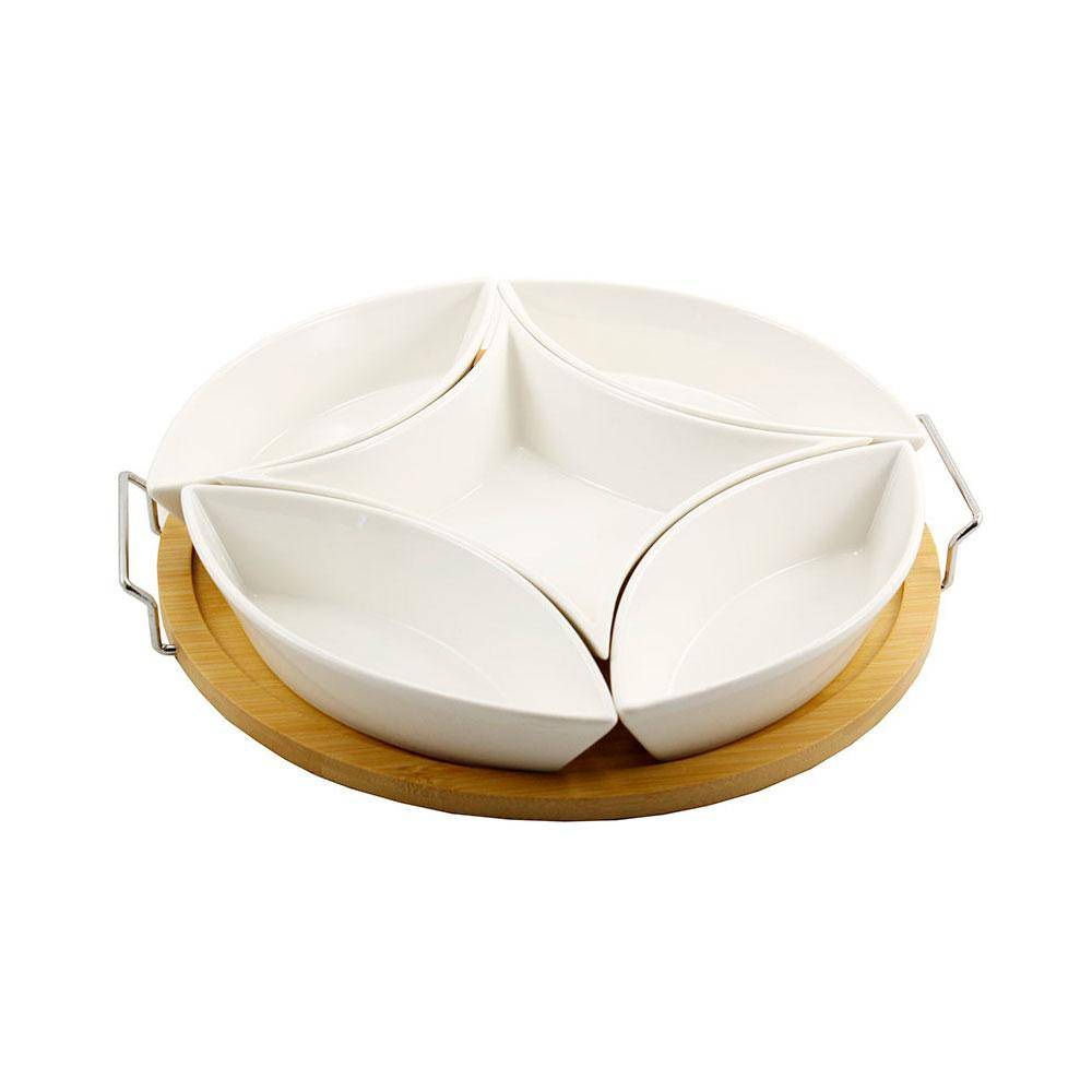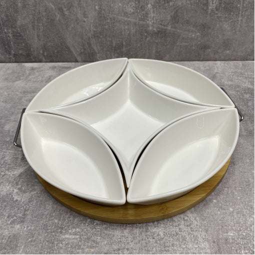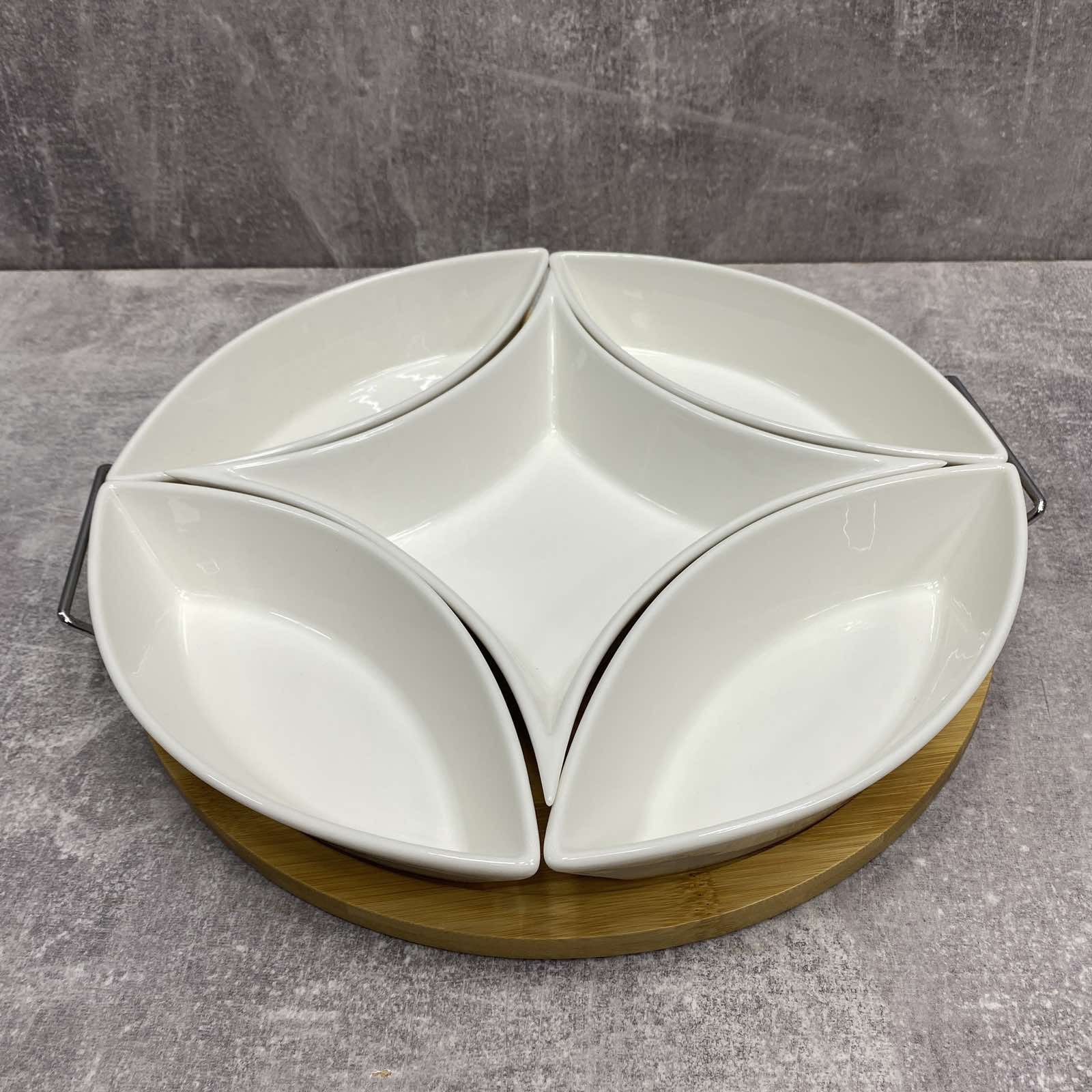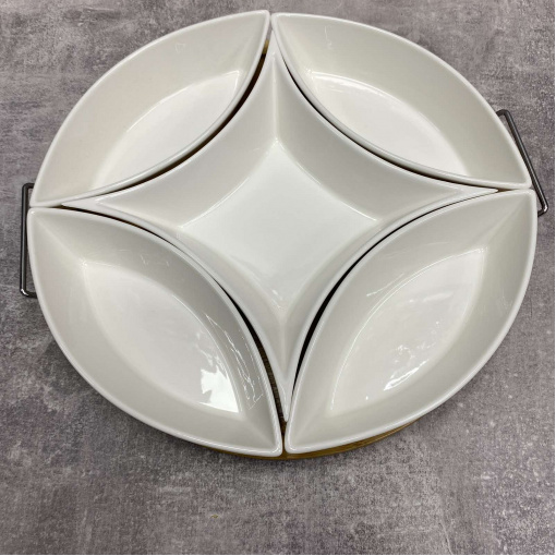 Мінажниця 5-ти секційна порцелянова 29 см на підставці Interos PJ02039