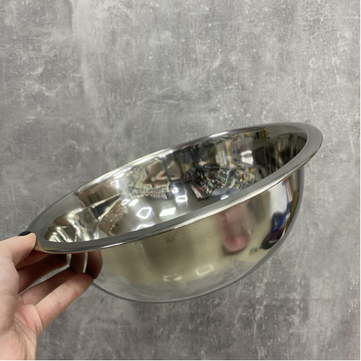 Миска виготовлена із нержавіючої сталі високої якості. Цей метал не вступає в реакцію з їжею і не змінює її смакових якостей і не поглинає запахи. Така миска міцна, при падінні не розіб'ється. Цей посуд довговічний і багатофункціональний. Очищати її просто навіть у холодній воді. Відмінно підходить для використання у поході на природу (має невелику вагу). Стане незамінним помічником на будь-якій кухні будинку чи кафе/ресторану.