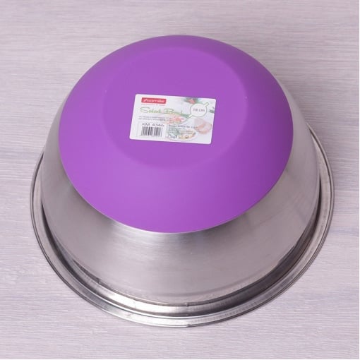Детальні характеристики Миска з нержавіючої сталі d-18 х 9 см з антиковзним дном Kamille 4346.