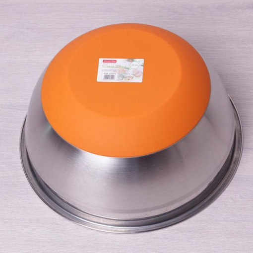 Детальні характеристики Миска сталева d 24 х 11 см із силіконовим дном помаранчева Kamille Labro KM-4349.