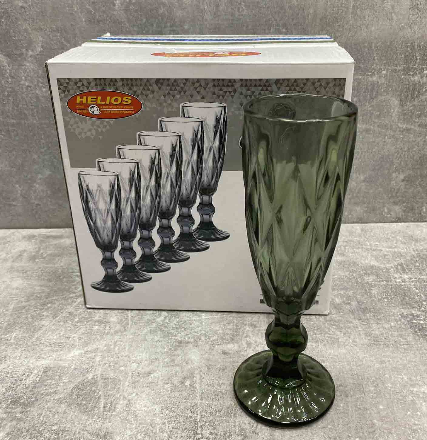 Детальні характеристики Набір келихів для шампанського Helios Grail 6445 Смарагд 150 мл 6 шт.