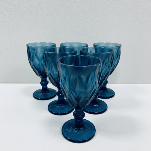 Набір скляних келихів для вина 6 шт 350 мл A-Plus 2257 блакитні Характеристика: Вид: Келих Тип постачання: Набір Матеріал: Скло Призначення: Для вина Об'єм: 350 мл Кількість в наборі: 6 шт Висота: 17,1 см Діаметр: 8,7 см