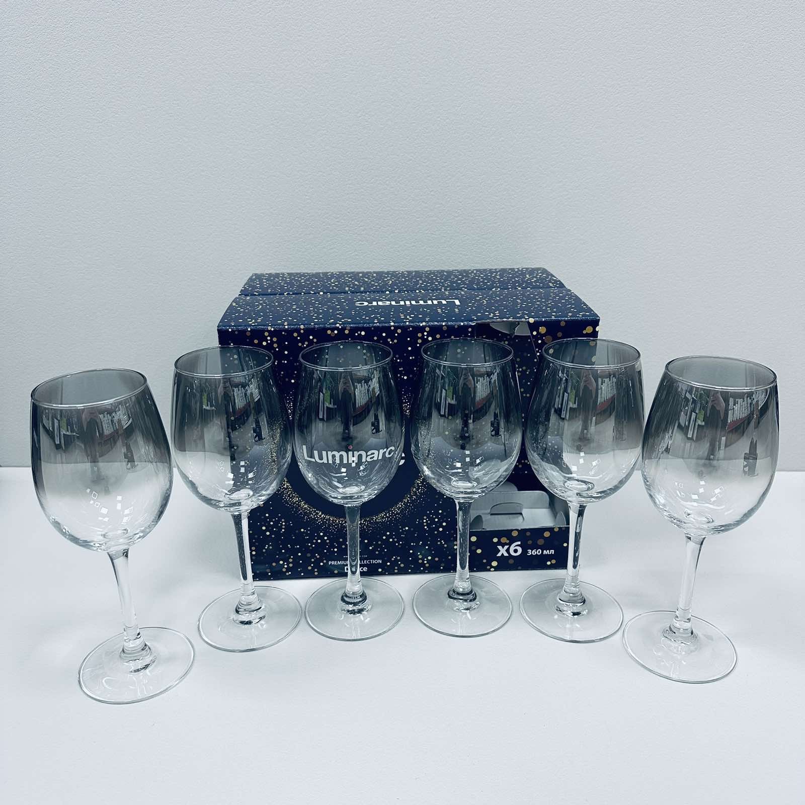 Детальні характеристики Набір келихів для вина Luminarc Delice Mist J9397/4 360 мл 6 шт Чорно-прозорий (23552).
