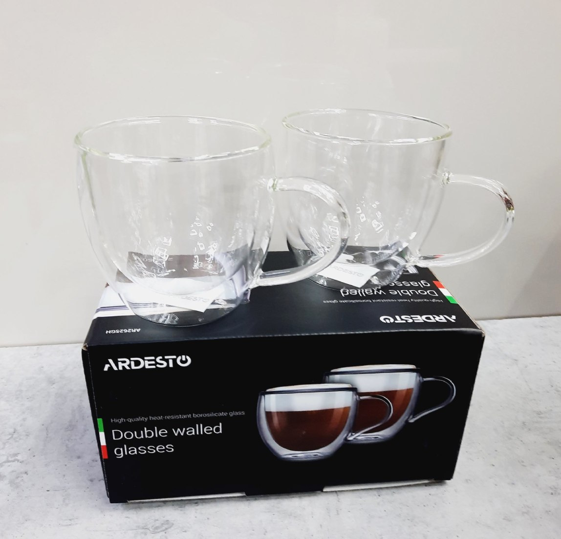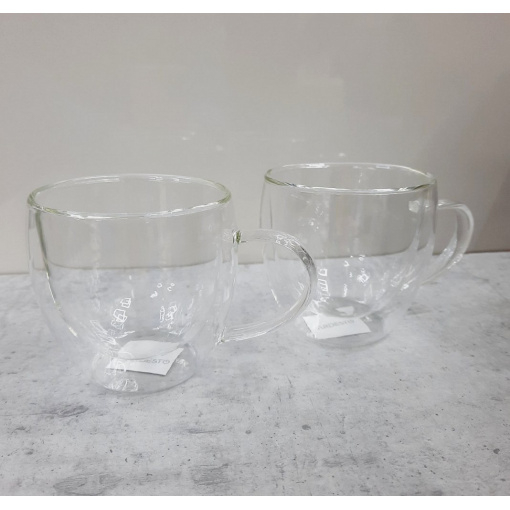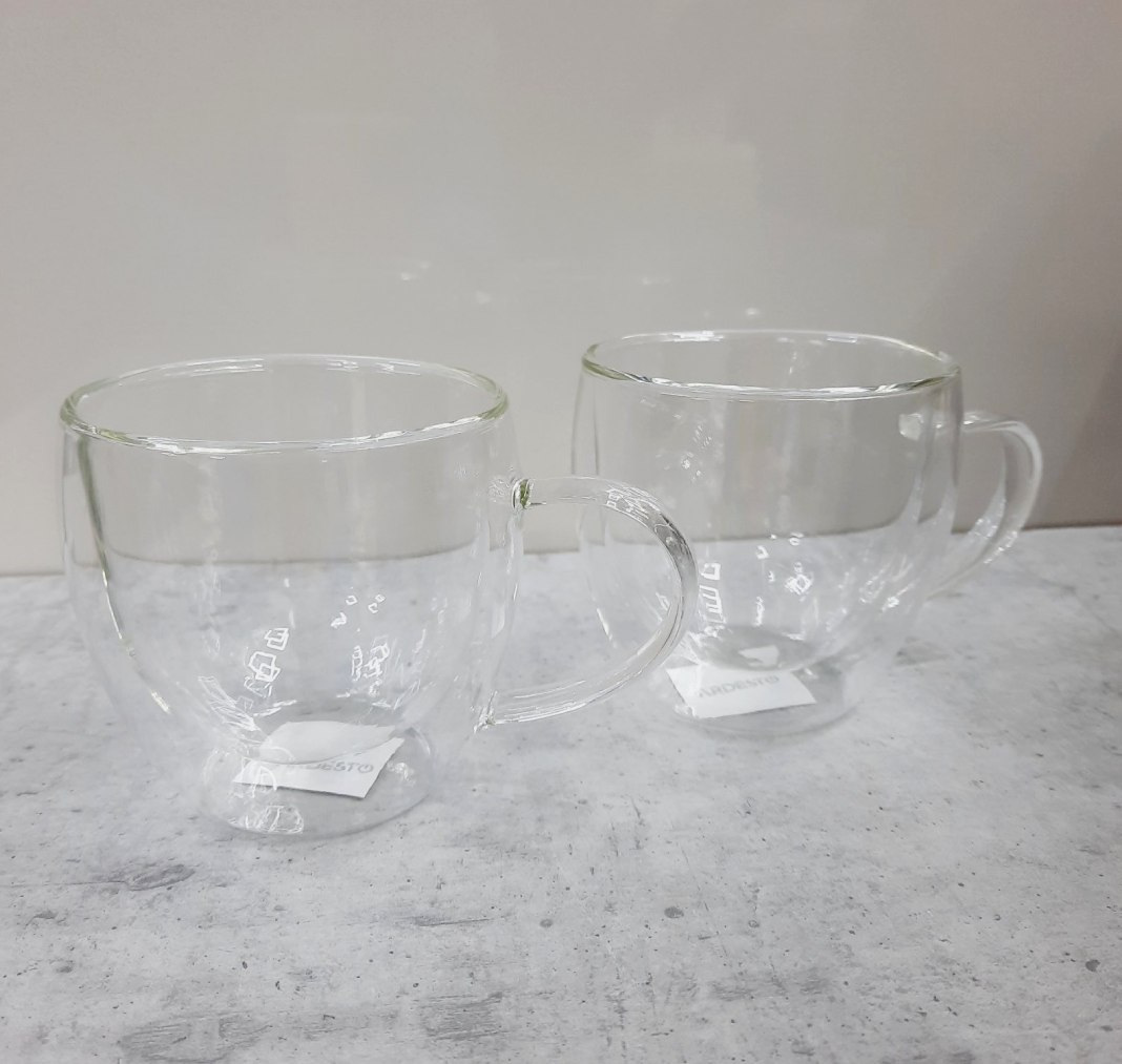 Набір чашок з ручками Ardesto з подвійними стінками 250 мл h-8,2 см 2 шт. боросилікатне скло AR2625GH