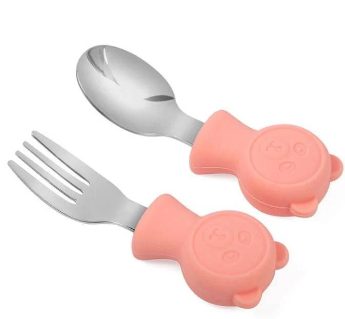 Набір дитячих столових приладів Stenson MA-4917 сталевий з персиковим