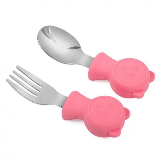 Набір дитячих столових приладів Stenson MA-4917 сталевий з рожевим