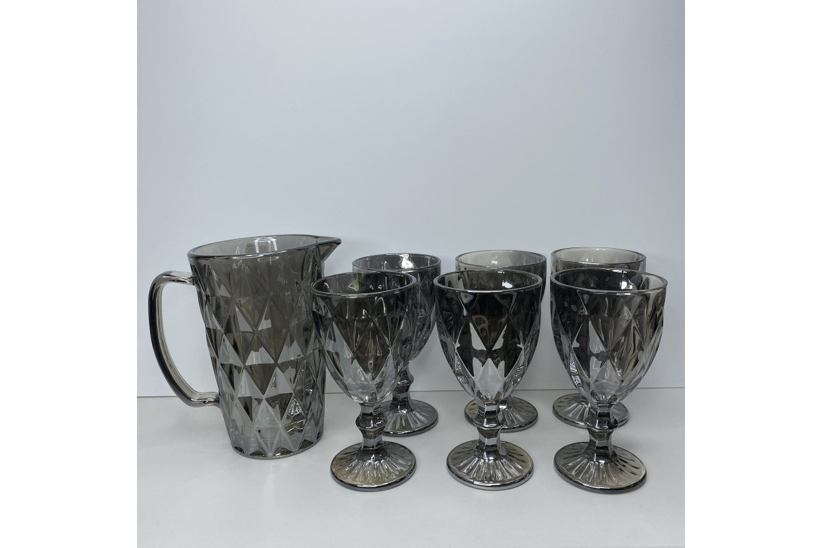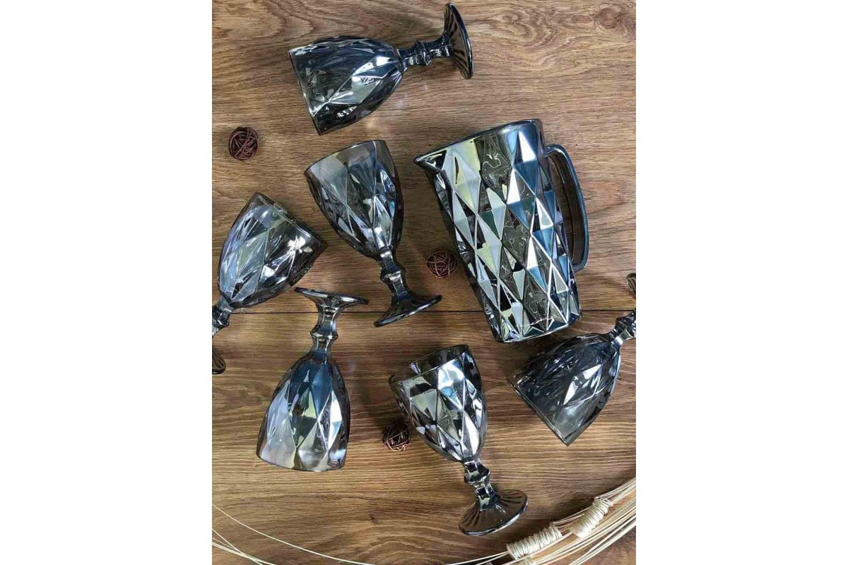 Набір для напоїв 7 предметів (6 келихів + глечик) Дзеркальний графіт OLens 01-019