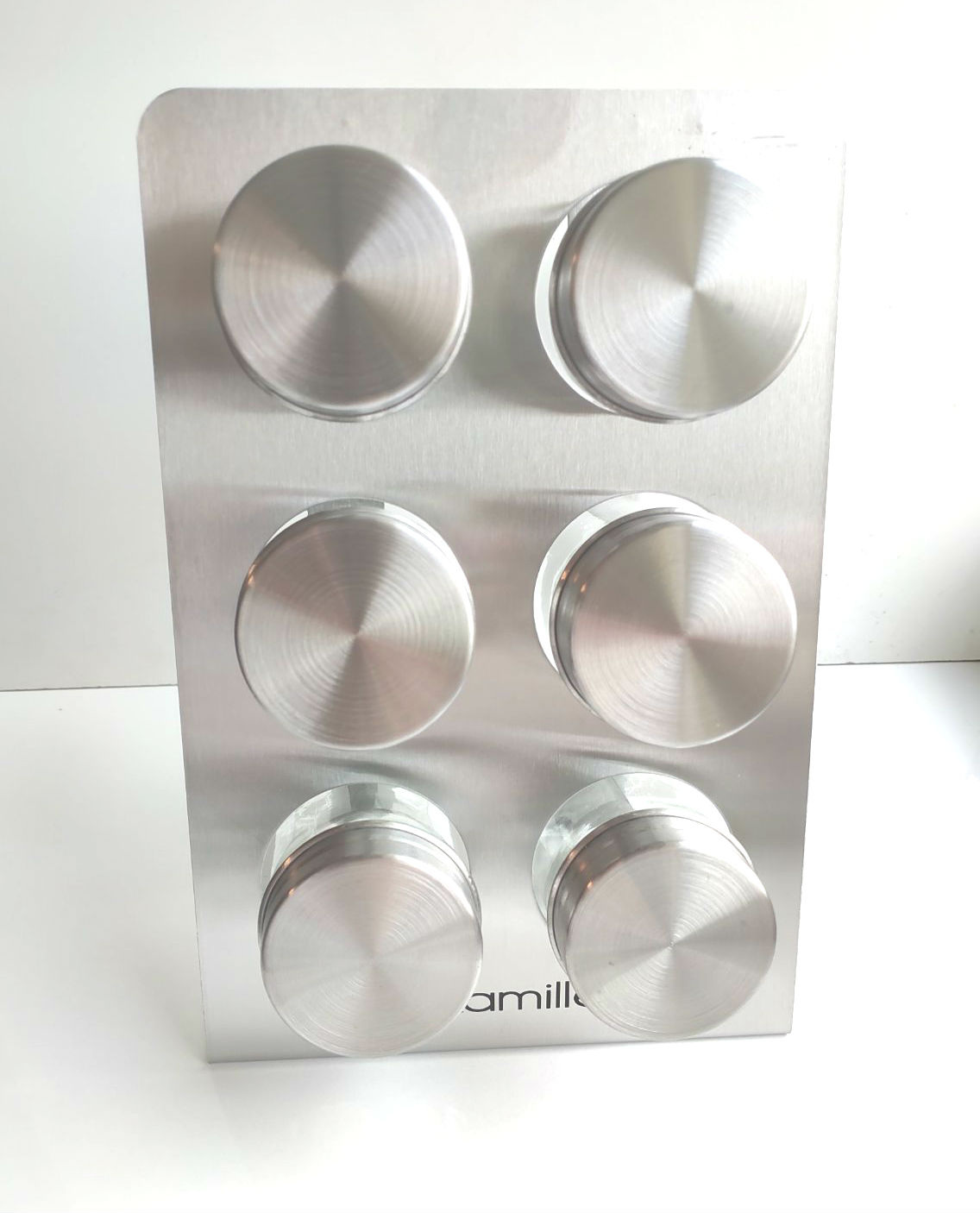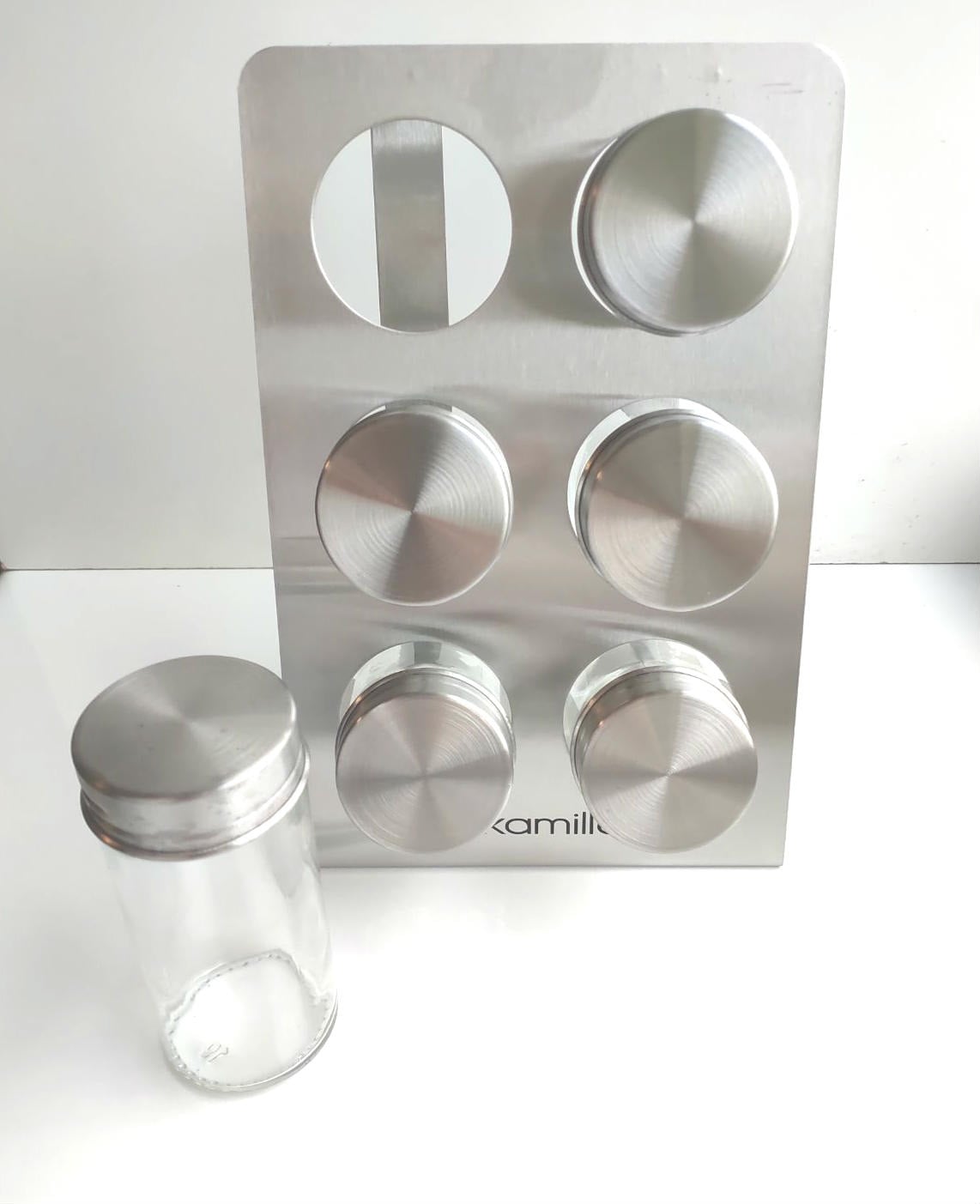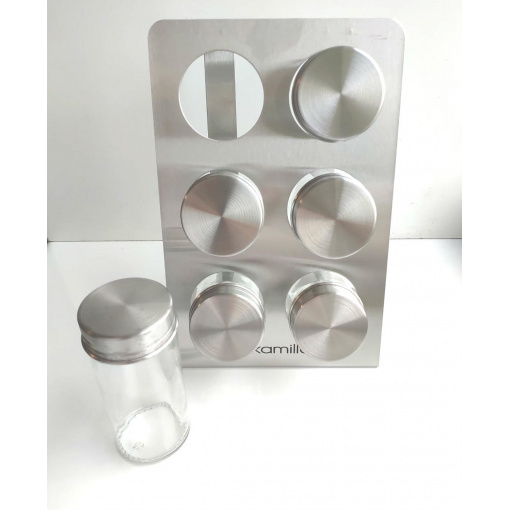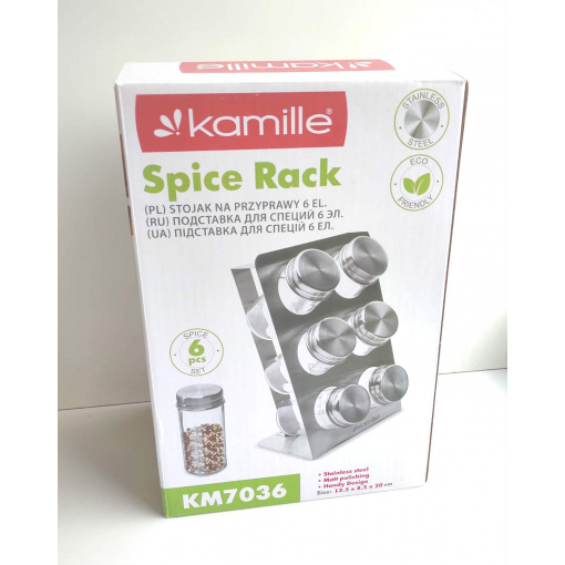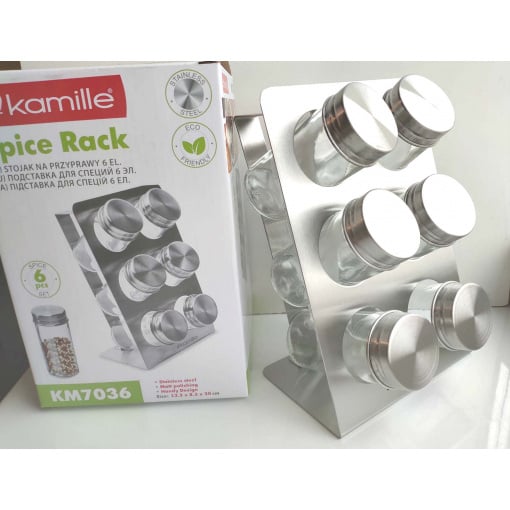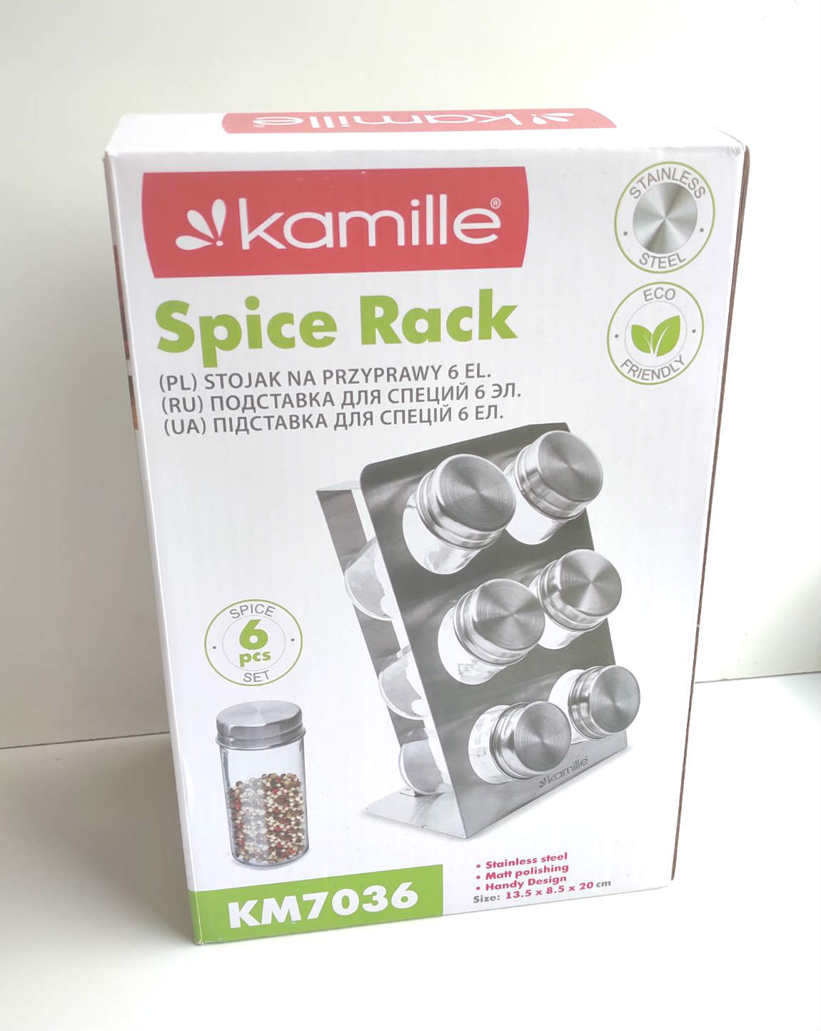 Набір ємностей для солі та спецій Kamille 7036 на прямокутній підставці 6 предметів.
