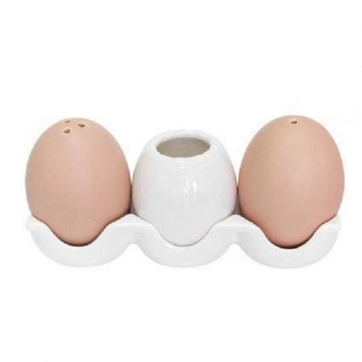 Набір для спецій Яйце - оригінальне і водночас просте рішення для зберігання спецій. Реалістична інтерпретація звичного нам предмета кухонного начиння, яке виглядає точнісінько як натуральні яйця (за кольором і розміром), при цьому на підставці імітує лоток для яєць. Крім сільнички і перечниці в комплект входить підставка під зубочистки, часом відсутній атрибут на столі. Вразіть близьких оригінальним подарунком, який стане в нагоді в будь-якому будинку!