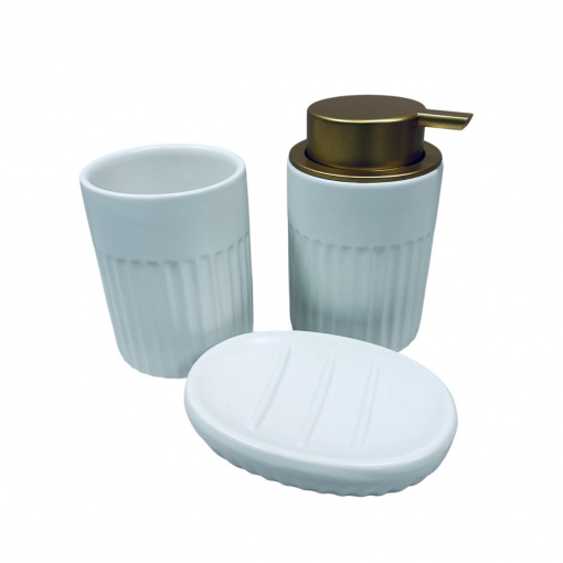 Набір для ванної кімнати Bona Di 851-331 дозатор для мила/склянка для зубних щіток/мильниця 3 предмети Білий (23585)