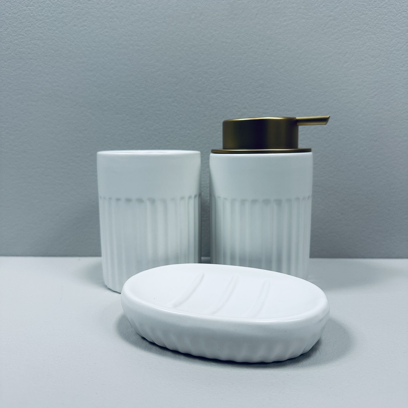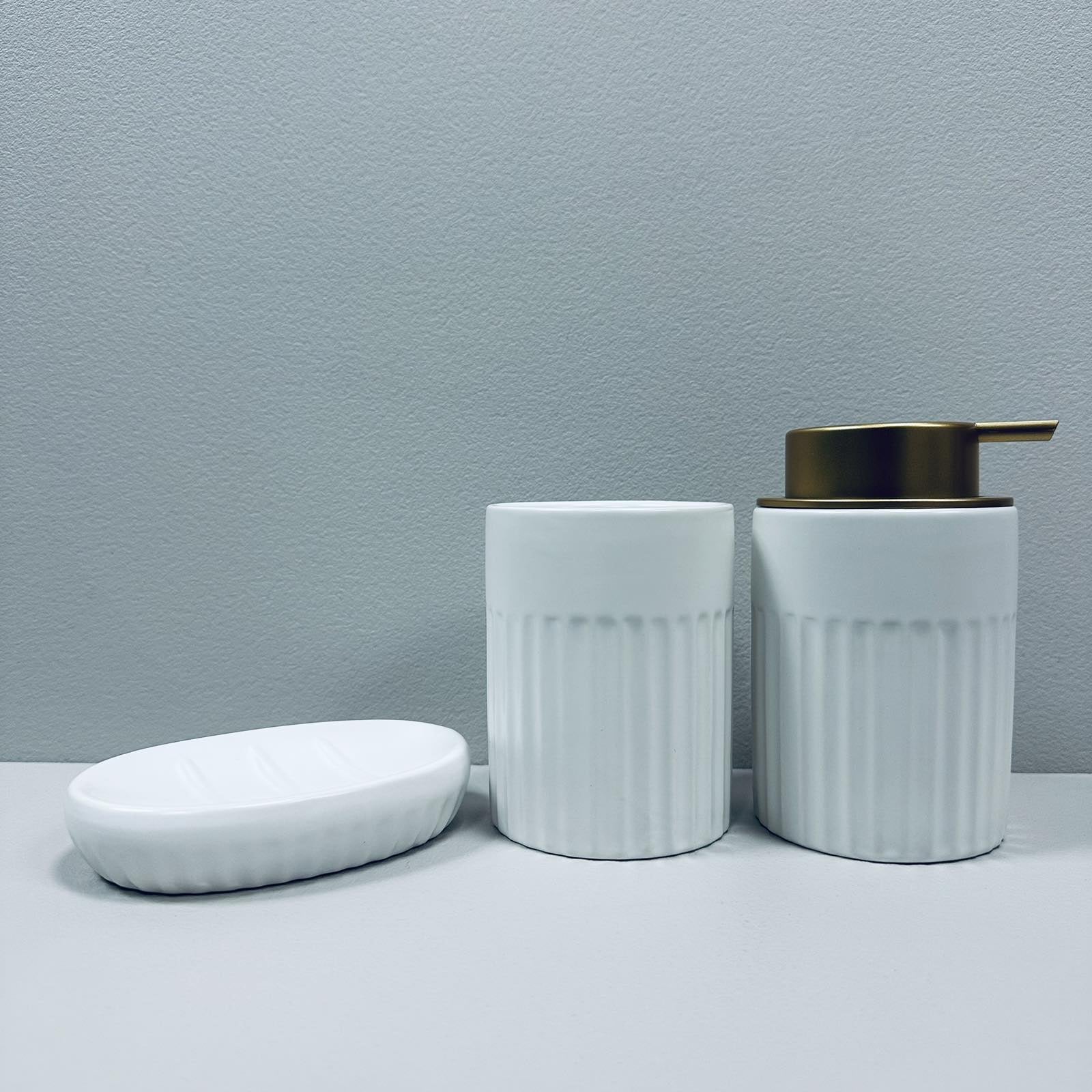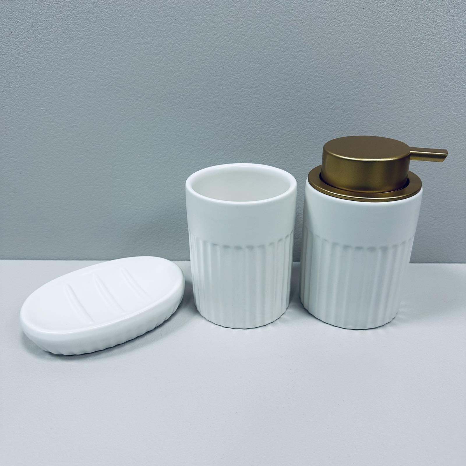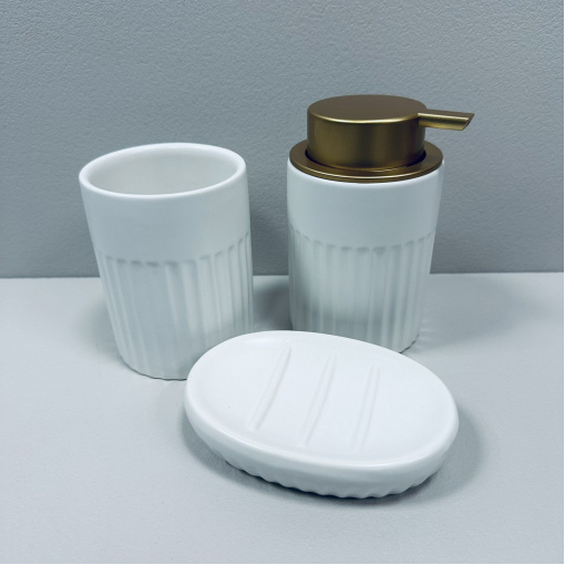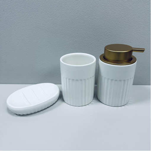 Набір для ванної кімнати (3 предмети) дозатор для мила, склянка для зубних щіток та мильниця Bona Di 851-331 білий матовий