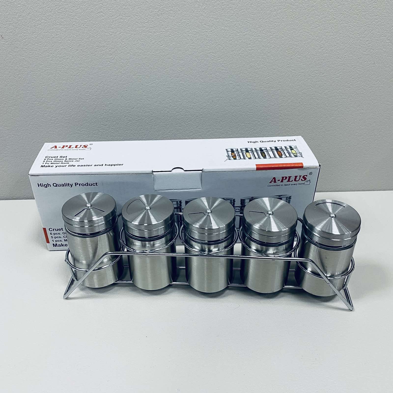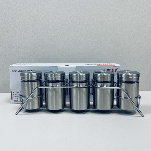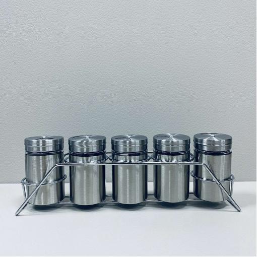 Детальні характеристики Набір ємностей для спецій на підставці A-PLUS 1732 5 шт 80 мл.