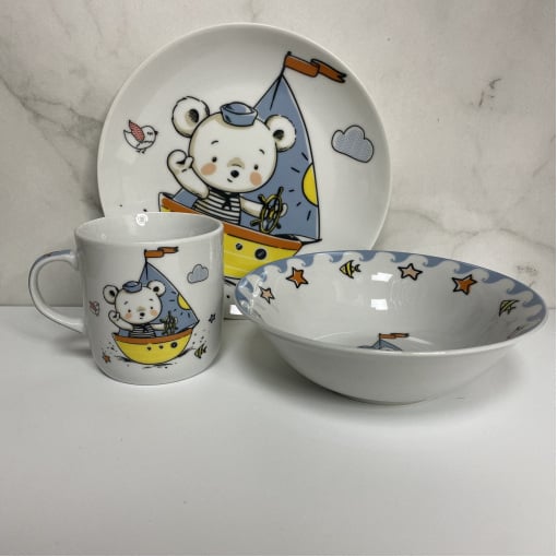 Набір порцелянового дитячого посуду Little Sailor 3 предмета Limited Edition C805