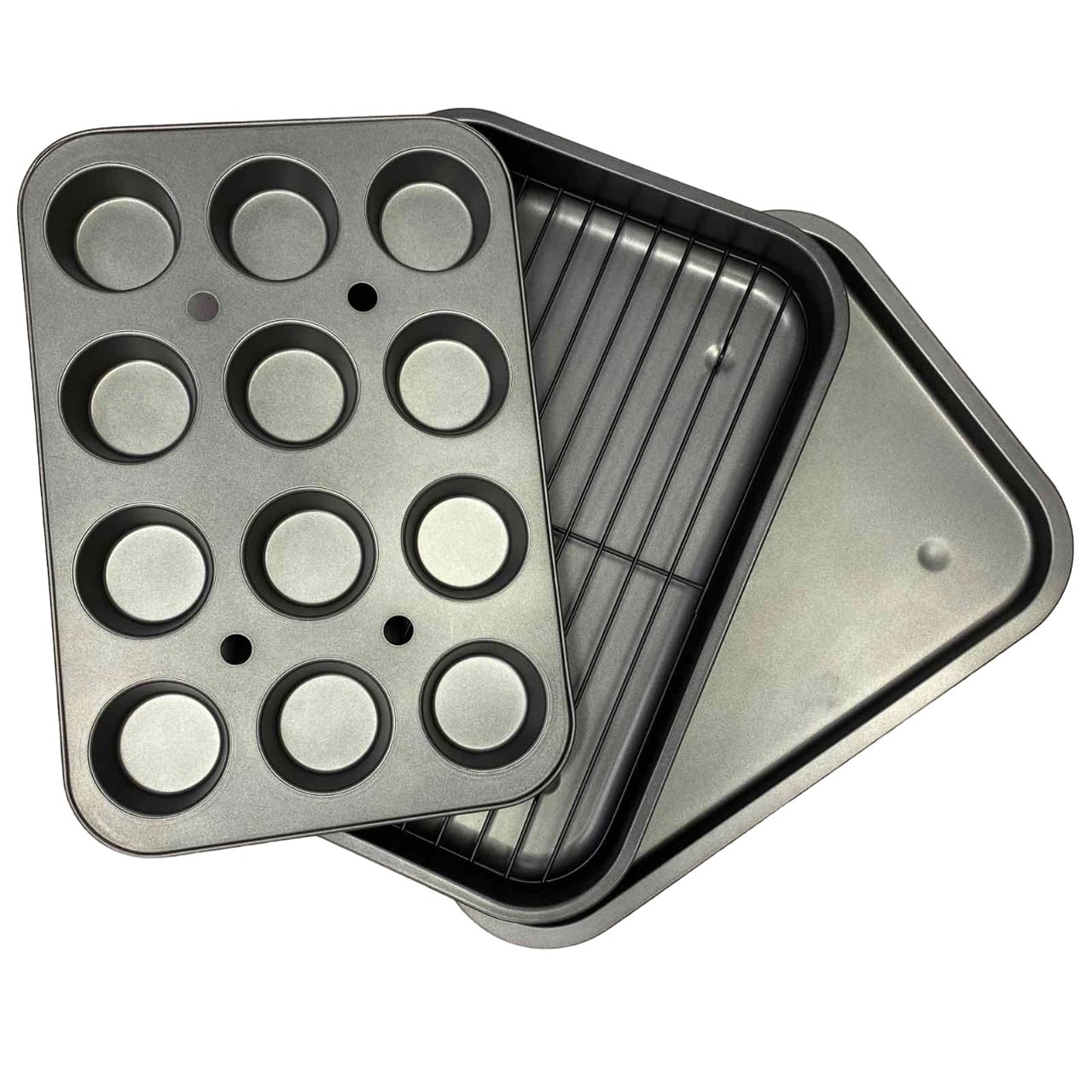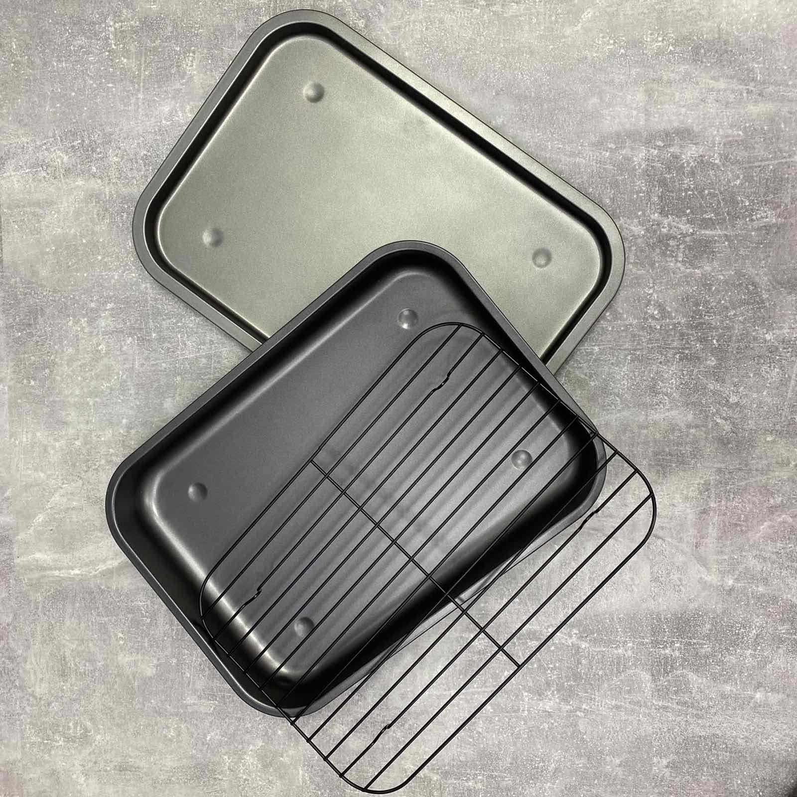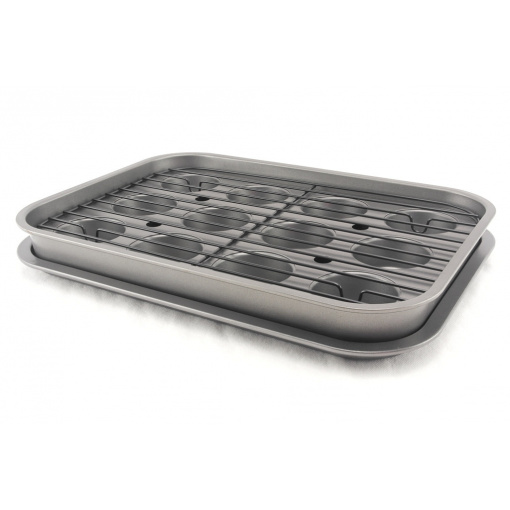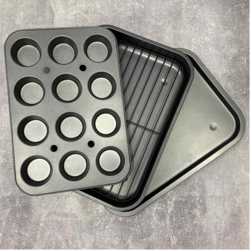 Набір форм для маффінів, м'яса з гратами гриль 4 шт A-Plus 1122 Лист виготовлений з високовуглецевої сталі. Чудово підходить для приготування риби, м'яса, овочів. Завдяки решітці продукти не стикаються з дном дека, не вбирають жир та олію. Їжа, приготовлена на решітці виходить дієтичніша і корисніша. Також у комплекті є деко для мафінів у якому 12 осередків. Характеристика: Вид: Форми Тип поставки: Набір Матеріал: Вуглецева сталь Колір: Сірий Кількість в наборі: 4 шт Розмір: форма для маффінів 38,5 см х 26,5 см х 3 см Глибокий лист 41 см х 29 см х 5 см Низький лист. 41,5 см х 29,7 см х 2 см Грати 37 см х 25 см.