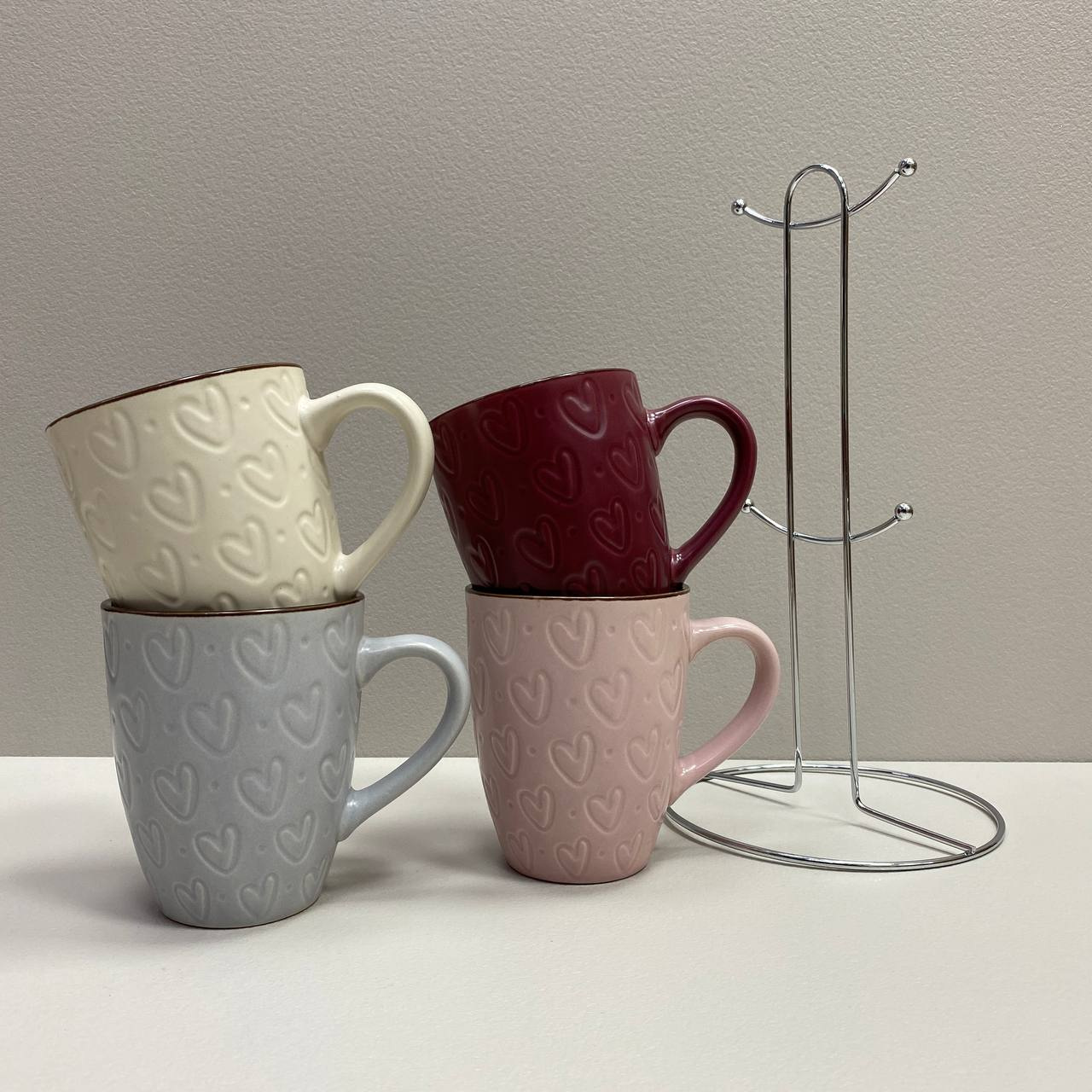 Набір кераміних чашок на металевій стійці Heart 4 шт 350 мл S&T 021-04-09