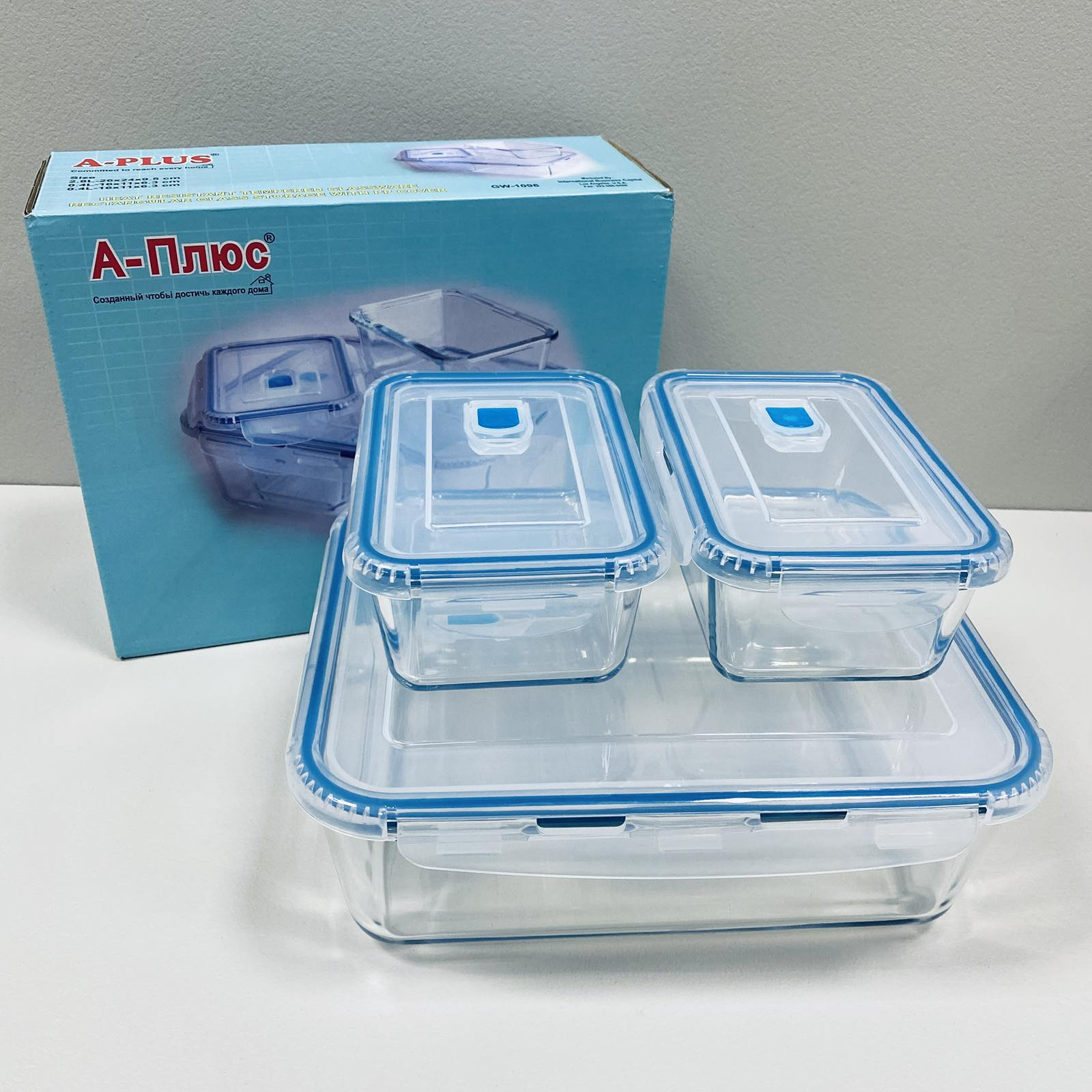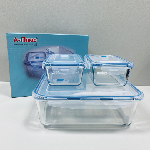 Набір скляних прямокутних лотків 3 шт A-Plus 1096-2 Набір прямокутних лотків із пластиковими кришками. Виготовлені з високоякісного жароміцного скла. Місткості екологічні, можна використовувати і для приготування, і для подачі страв. Завдяки пластиковим кришкам, у ємностях зручно зберігати продукти та приготовані страви. Кришки герметично закривають ємності. Характеристика : Вигляд: Лотки Тип постачання: Набір Матеріал виробу: Скло Матеріал кришки: Пластик Форма: Прямокутна Колір: Прозорий Об'єм: 2,8 л, 0, 4 л, 0,4 л Розмір: 26*24*9,5 см, 16*11*6,3 см, 16*11*6,3 см Кількість у наборі: 3 шт Комплектація: лотки – 3 шт., кришки – 3 шт.