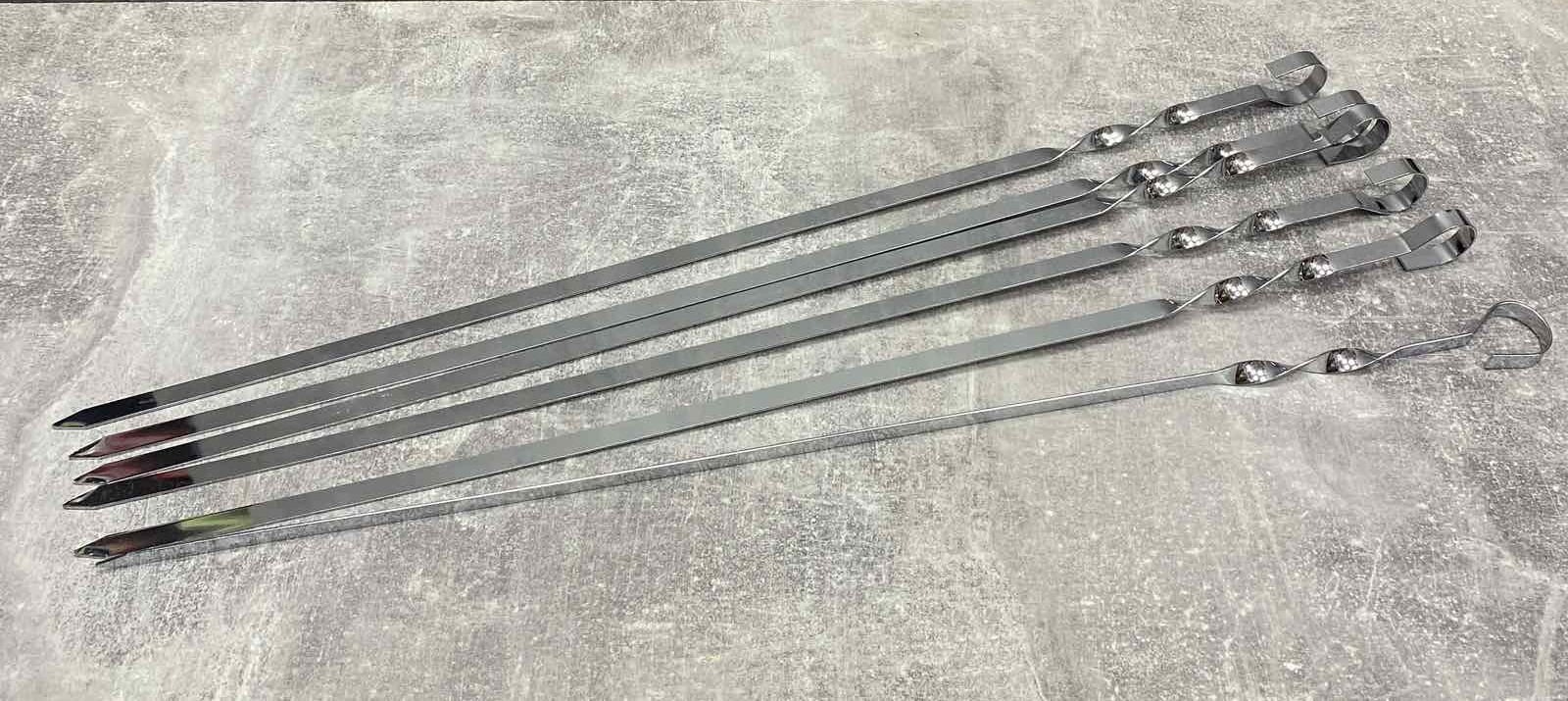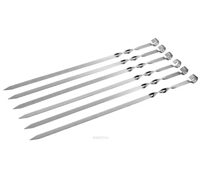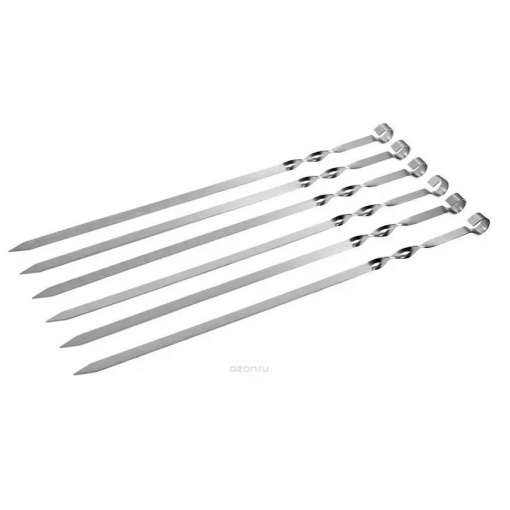 Набір шампурів для гриля виготовлений з нержавіючої сталі високої якості. Цей метал не входить у реакцію з їжею під час експлуатації, отже, не змінює її смак і запах. Товар міцний та довговічний, має зручну ручку, завдяки якій можна фіксувати шампур у потрібному положенні. За допомогою таких багатофункціональних шампурів можна приготувати всілякі страви (м'ясо, овочі).