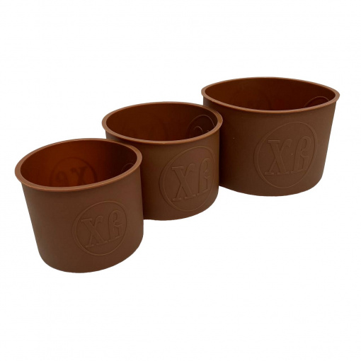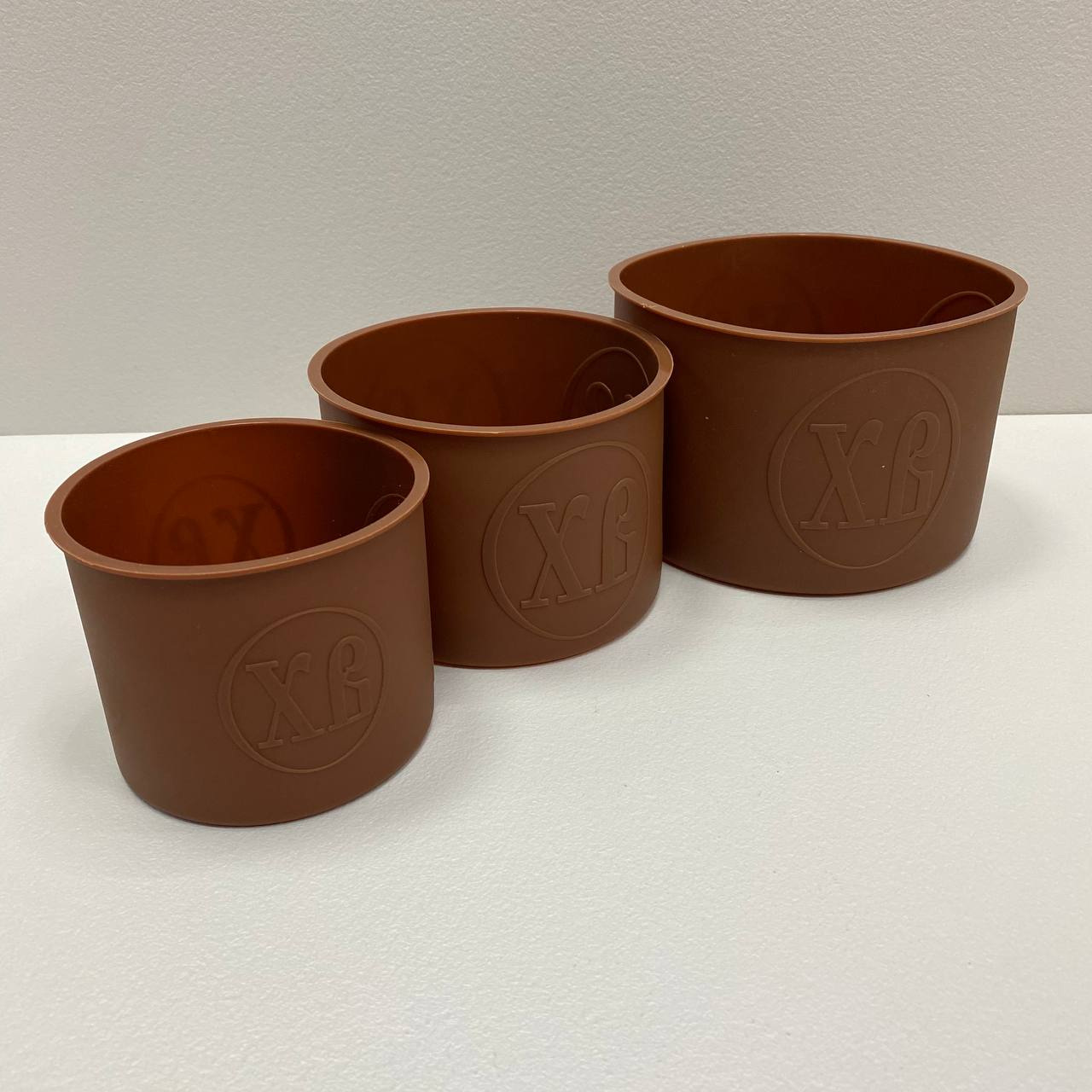 Набір силіконових форм для випікання  з літерами ХВ 3 шт Stenson MH-3823 Набір силіконових форм для Великодня виготовлений з високоякісного харчового силікону. Форми призначені для випікання в духовках будь-якого типу, в мікрохвильових печах. Також може використовуватися для зберігання в холодильнику та морозильних камерах. Витримує температуру від –30 до +230 градусів. Внутрішня бічна поверхня прикрашена тисненням "ХВ", яке добре надруковано на готовій випічці. Характеристика: Тип: Форма Тип поставки: Набір Матеріал: Силікон Колір: Коричневий Кількість у наборі: 3 шт Розмір: Ø15*10, Ø12,5*9, Ø10*8,3 см Призначення: Для випікання Великодня