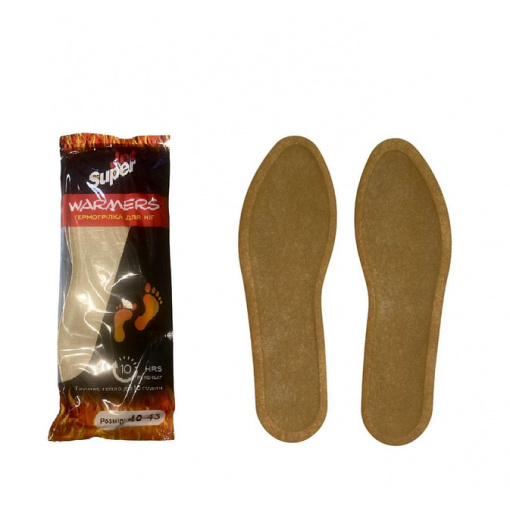 Набір устілок самонагріваючих 2 шт розмір 43-45 3-200 Устілка - зігріває, перешкоджає переохолодженню ніг. Допомагає швидко зігріти ноги за холодної погоди. Стане вашим незамінним супутником у холодну пору року: у подорожах та тривалих прогулянках, у приміщенні та на вулиці. Середня температура нагрівання 41°С. Тривалість дії – до 10 години. Спосіб застосування: 1. Вийміть грілку із захисної упаковки, потрусити для змішування та активації. 2. Вставте грілку у взуття. 3. Протягом 10-15 хвилин відбувається нагрівання грілки. 4. Після використання викинути у сміття. Характеристика: Вид: Устілка Тип постачання: Набір Основний склад: Залізний порошок, сіль, активоване вугілля