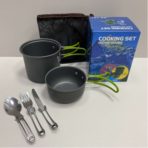 Набір туристичного посуду із зеленими ручками Cooking Set DS-101/6017