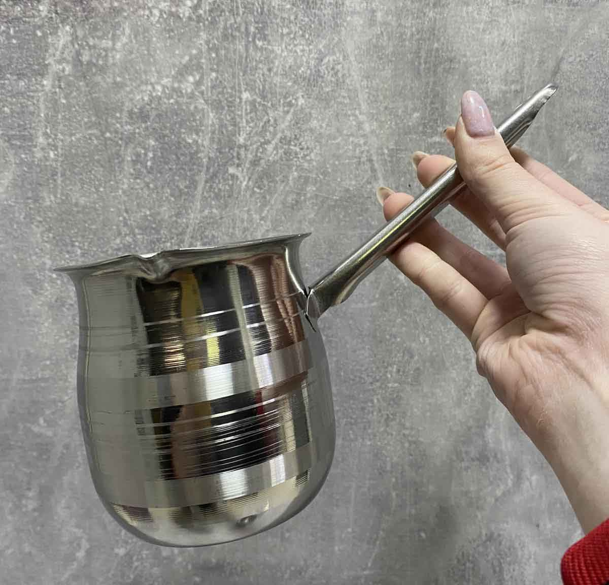 Набір турок виготовлений із нержавіючої сталі високої якості. Цей метал не входить у реакцію з напоєм під час приготування, отже не змінює її смак і запах. Турка підходить для заварювання кави, чаю чи різних трав чи підігріву рідин. Такий посуд міцний та довговічний. Легко очищається навіть у холодній воді.