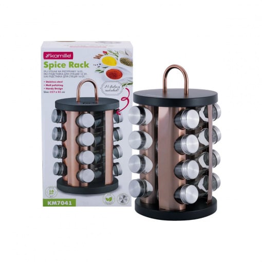 Набір ємностей для спецій на круглій підставці 16 шт. Kamille KM-7041