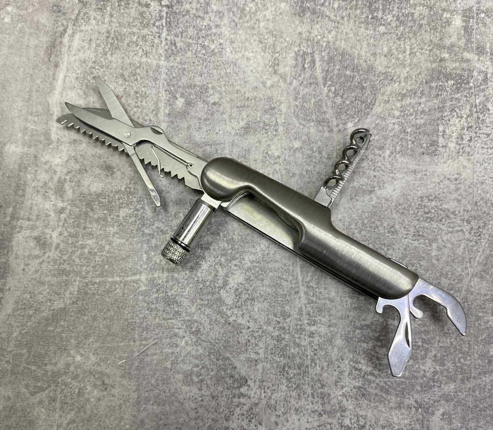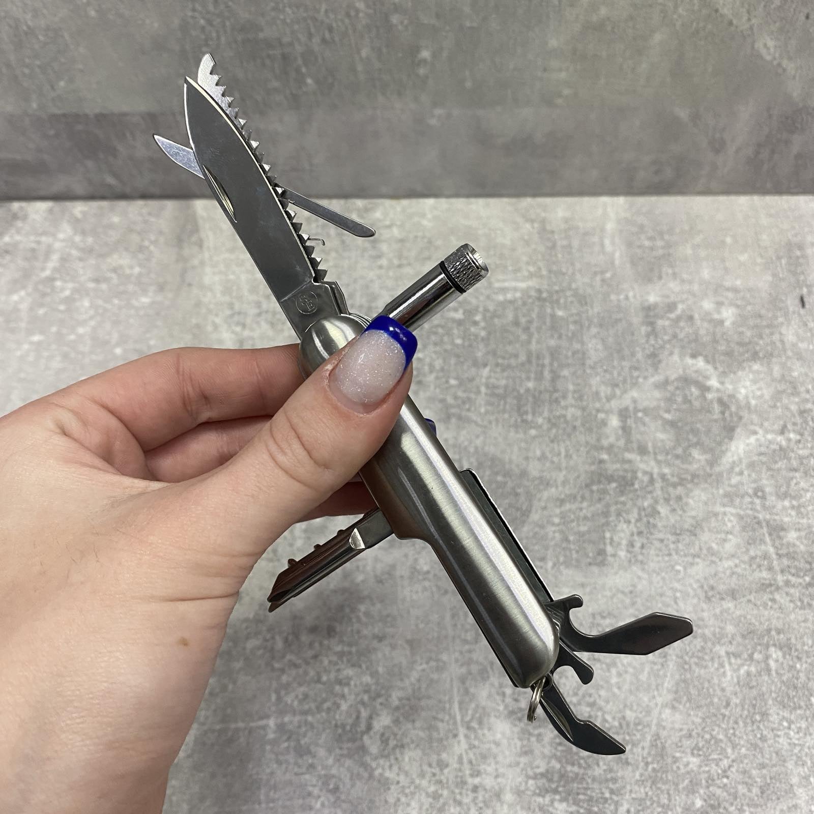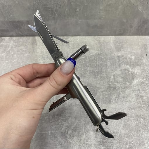 Багатофункціональний ніж з набором інструментів. Може використовуватись як похідний туристичний аксесуар. Є маленький зручний ліхтарик.