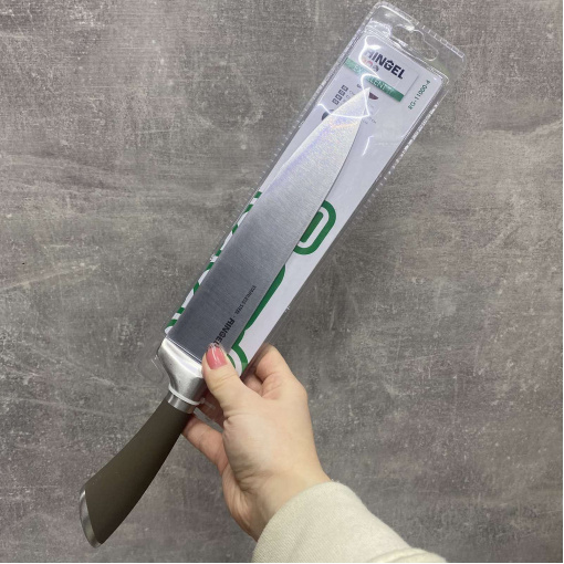 Серія ножів Excellent торгової марки – Rignel – це добре збалансовані ножі правильної геометричної форми із цільнолитим корпусом та прогумованою ручкою. Мартенситна нержавіюча сталь (сталь AISI 420), з якої виготовлено лезо ножа, має високу міцність і корозійну стійкість. Ціліснолитий корпус ножів Excellent забезпечує максимально довге та надійне використання виробів на вашій кухні.