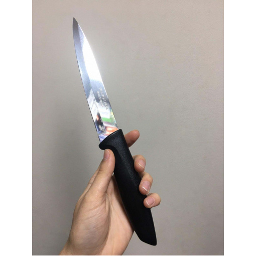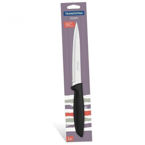 Ніж обробний Tramontina Plenus 23424/106 Довжина: 15,2 см Матеріал леза: нержавіюча сталь Матеріал рукоятки: поліпропілен Режуча кромка ножа: гладка Бренд Tramontina заснований в Бразилії в 1911 році. 10 фабрик, які виробляють понад 18 000 найменувань. Один з лідерів світового ринку з виробництва ножів, їдалень та кухонного приладдя, посуду для приготування їжі, інструментів для сільського господарства, будівництва та саду. Tramontina виробляє кухонне начиння тільки з найкращої 18/10 нержавіючої сталі, відполірованої до дзеркального блиску, яка з часом не тьмяніє і не темніє. Кожен елемент розробляється з умовою, щоб він зміг задовольнити смак як звичайного домовласника, так і найбільш вимогливого професійного кухаря. Приносить задоволення від процесу приготування їжі та від того, як це поєднує людей залучених до цього процесу.