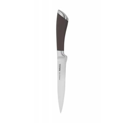 Ніж універсальний Ringel Exzellent RG-11000-2 Серія ножів Excellent торгової марки – Rignel – це добре збалансовані ножі правильної геометричної форми із цільнолитим корпусом та прогумованою ручкою. Мартенситна нержавіюча сталь (сталь AISI 420), з якої виготовлено лезо ножа, має високу міцність і корозійну стійкість. Ціліснолитий корпус ножів Excellent забезпечує максимально довге та надійне використання виробів на вашій кухні. Характеристика: Тип: Ніж Призначення: Для овочів Матеріал леза: Нержавіюча сталь Матеріал ручки: Нержавіюча сталь/силікон Тип кріплення ручки: Цільне лиття Колір: Сталевий/коричневий Довжина леза: 12 см