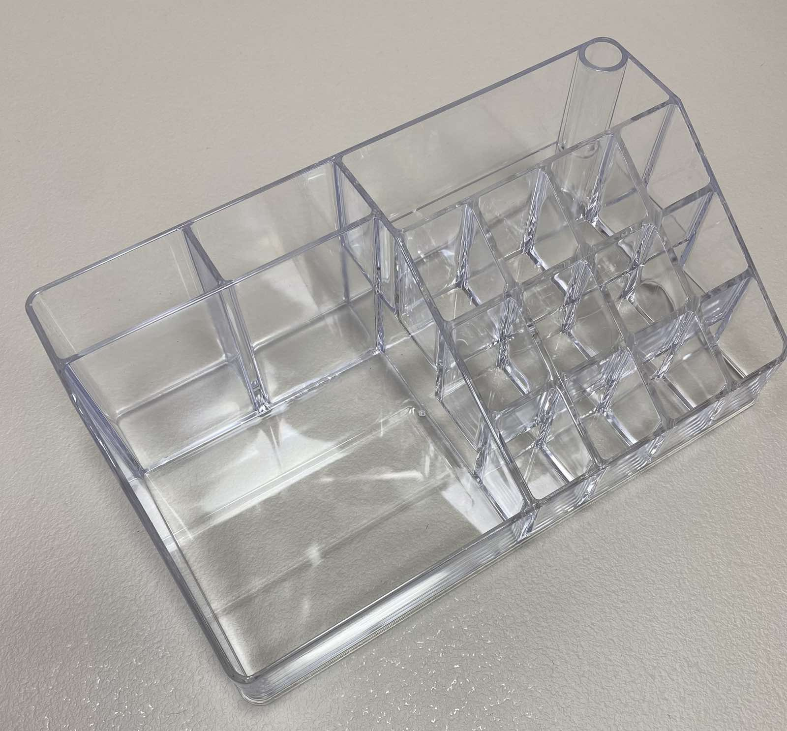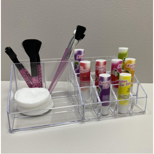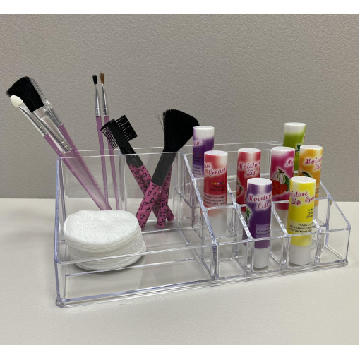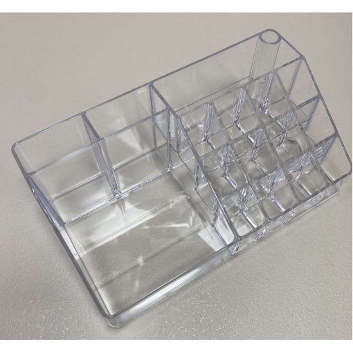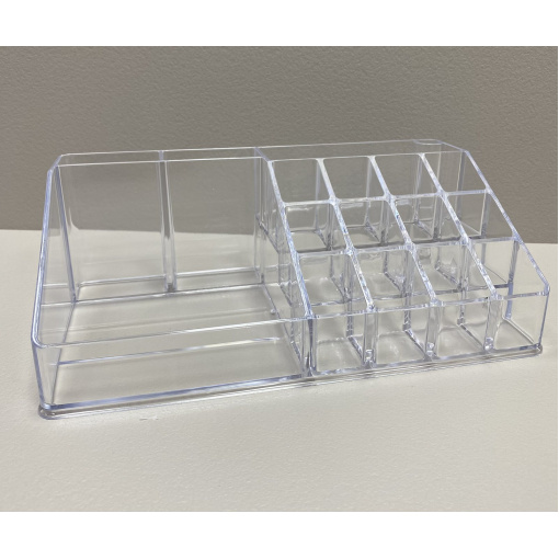 Органайзер для косметики 21,8*12,2*7,8 см Akay Plastik AK610 Ретельно продумана конструкція дозволяє зберігати помади, пензлі, аплікатори, палетки, тюбики різних розмірів, а також біжутерію завжди під рукою. Органайзер виготовлений з пластику, який безпечний для здоров'я людини і має високу зносостійкість і не вимагає особливого догляду. Його прозорі стіни дають змогу бачити вміст. Органайзер дозволяє зберігати косметику компактно та доступно до швидкого використання, дотримуючись акуратності та гігієнічності їх зберігання. Характеристика: Вид: Органайзер Матеріал: Пластик Призначення: Для косметики Розмір: 21,8*12,2*7,8 см Колір: Прозорий