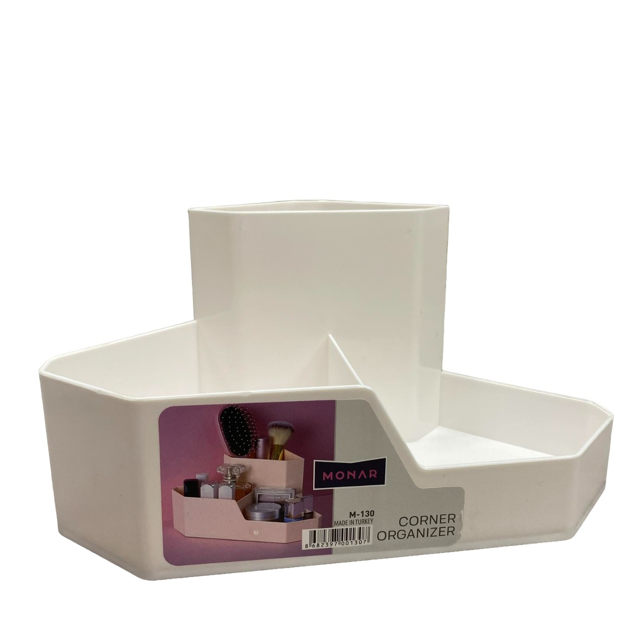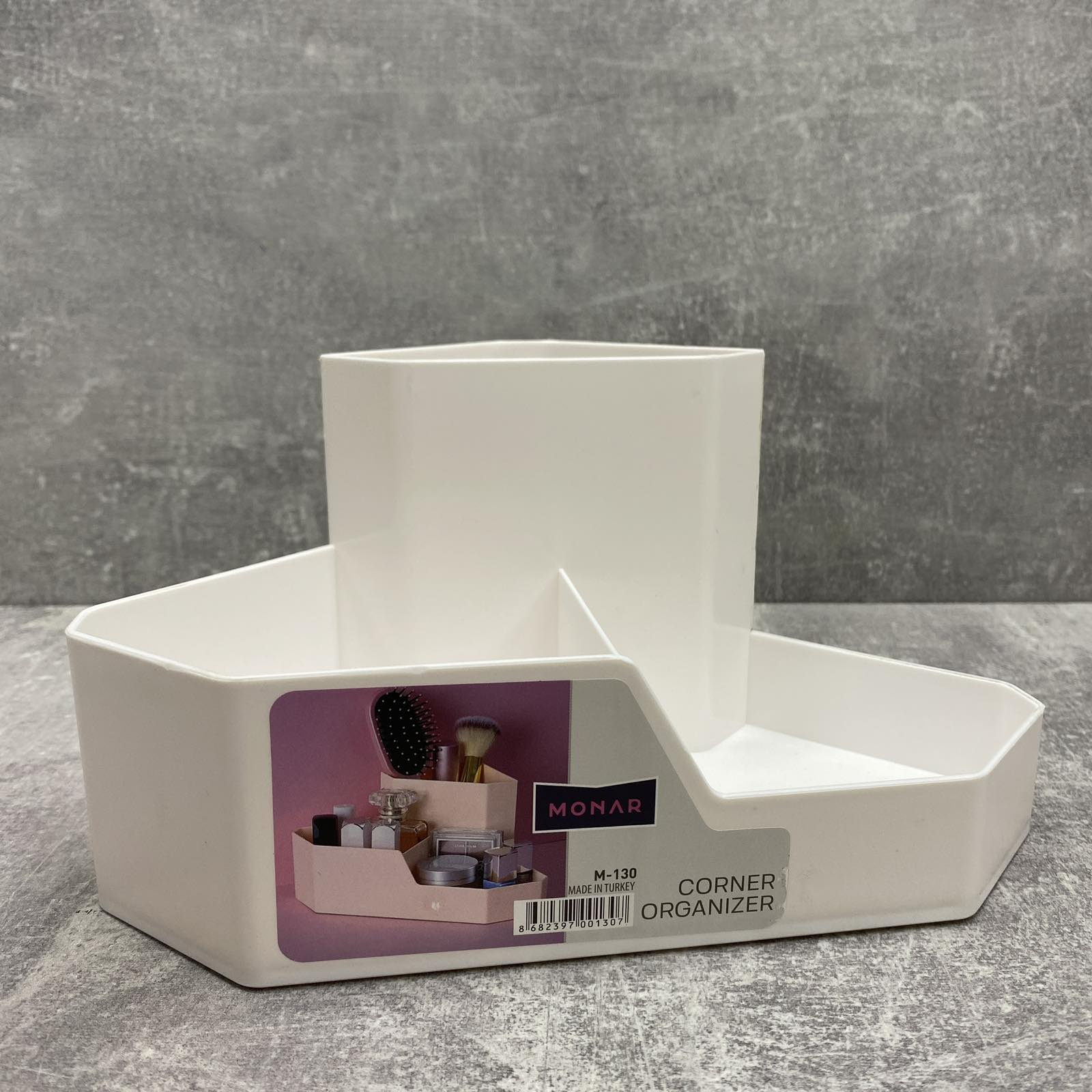 Органайзер для косметики та канцелярії кутовий 22*16*11,3 см Monar M-130 білий Органайзер виготовлений із високоякісного турецького пластику. Зручно використовуватиме зберігання канцелярії, косметики тощо. Характеристика: Вид: Органайзер Матеріал: Пластик Колір: Білий Ширина: 16 см Висота: 11,3 см Довжина: 22 см