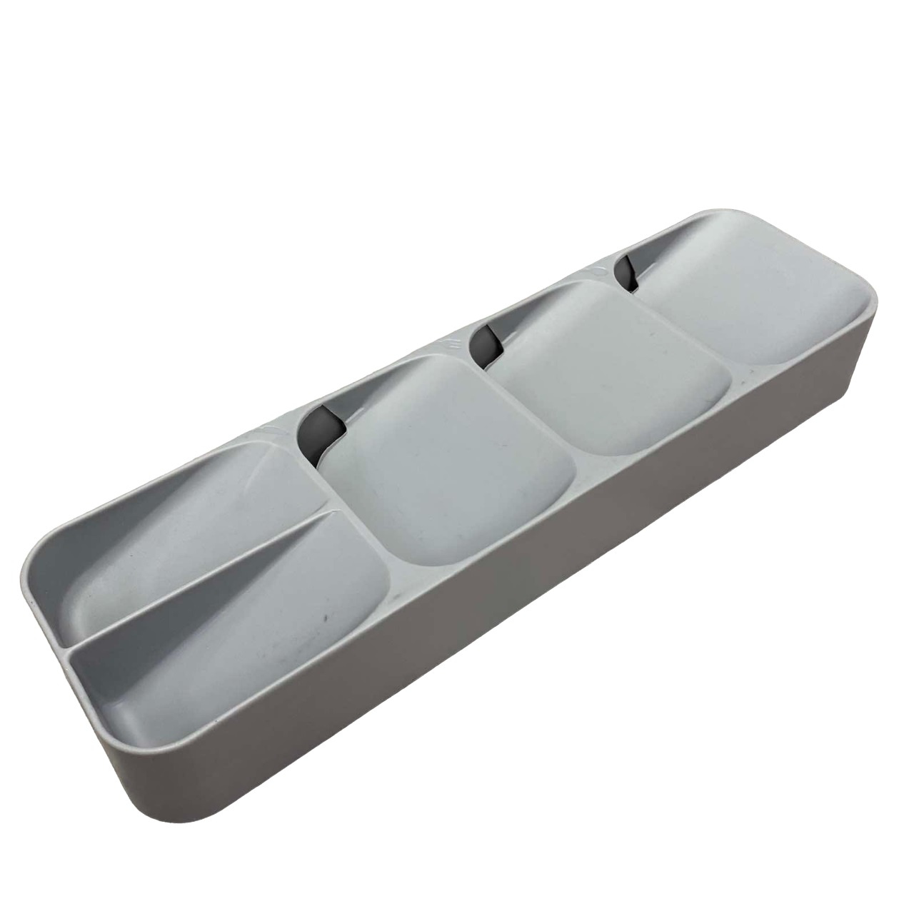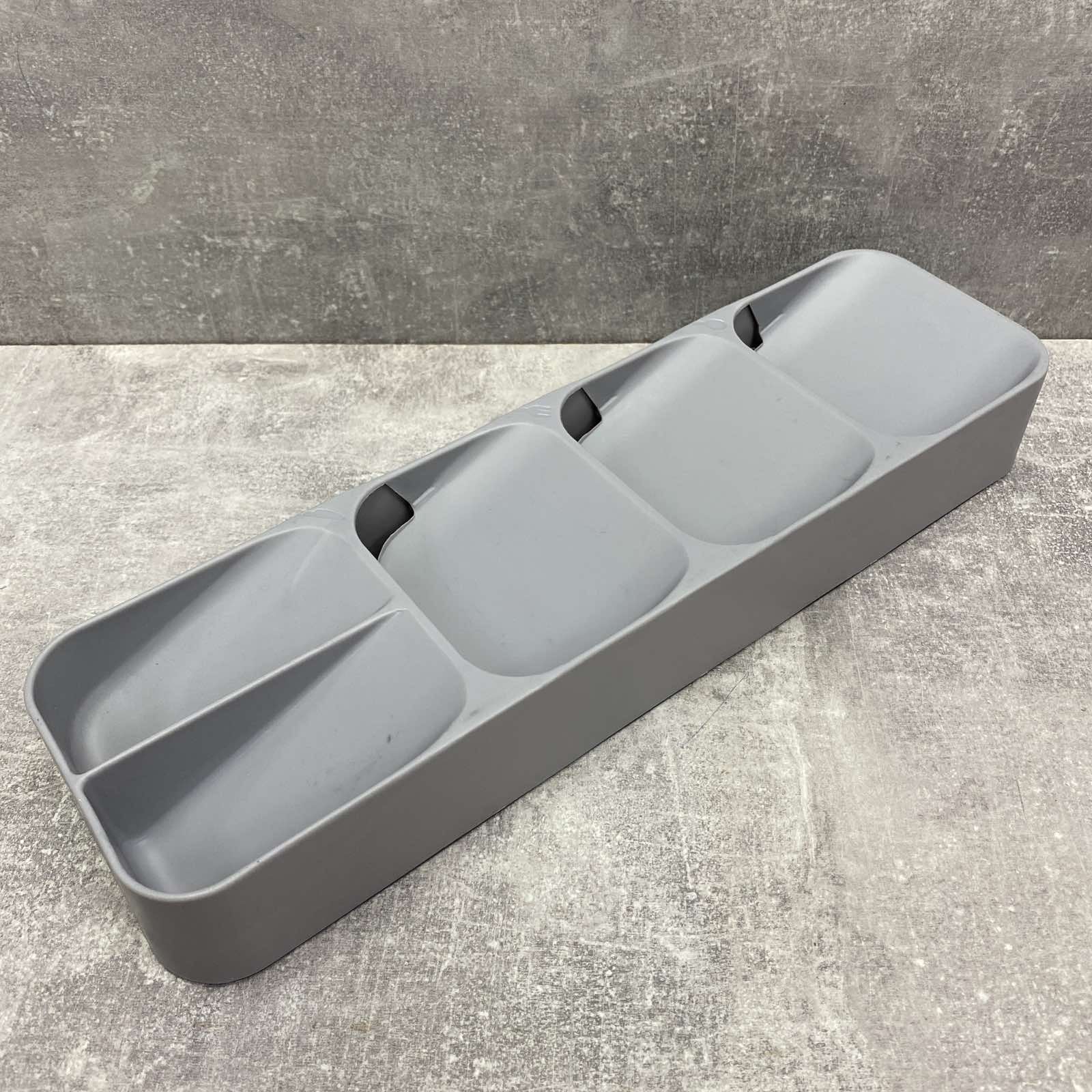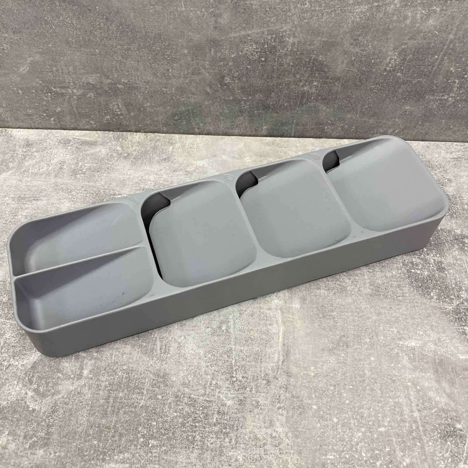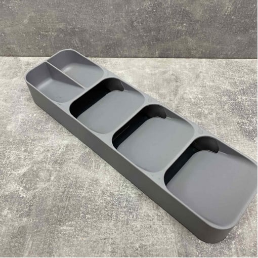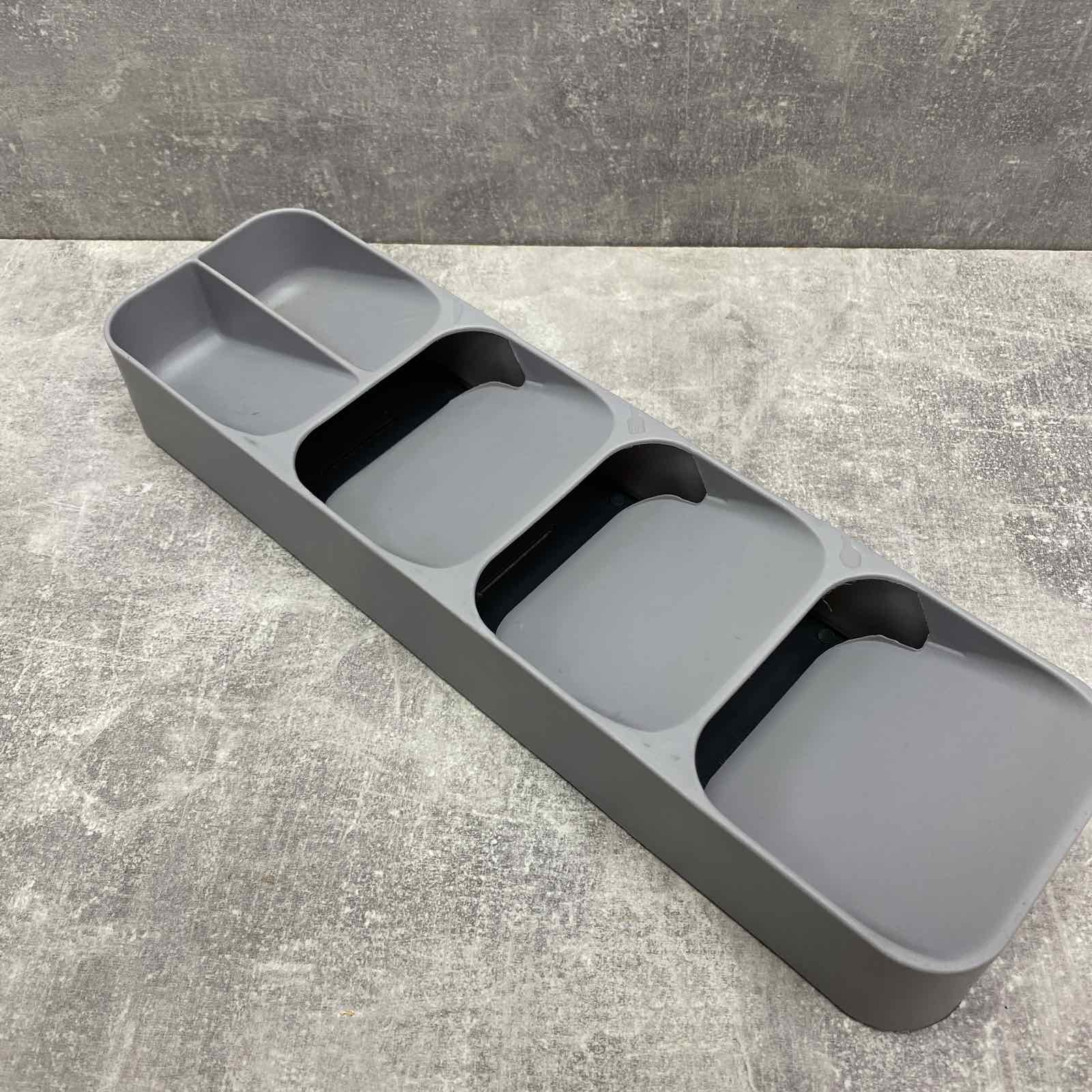 Органайзер для столових приладів 39,5*11*5,7 см A-Plus 513 CC сірий Органайзер для столових приладів – це практичний аксесуар, який стане справжньою знахідкою для вашої кухні. Органайзер для столових приладів – зручна та практична річ для зберігання столових приладів. Виготовлений із міцного пластику. За рахунок наявності чотирьох різних відділень прилади знаходяться у своєму відсіку. Такий органайзер добре впишеться в сучасний інтер'єр і стане його важливим елементом. Характеристика: Вид: Органайзер Призначення: Для столових приладів Матеріал: Пластик Колір: Сірий Розмір: 39,5*11*5,7 см