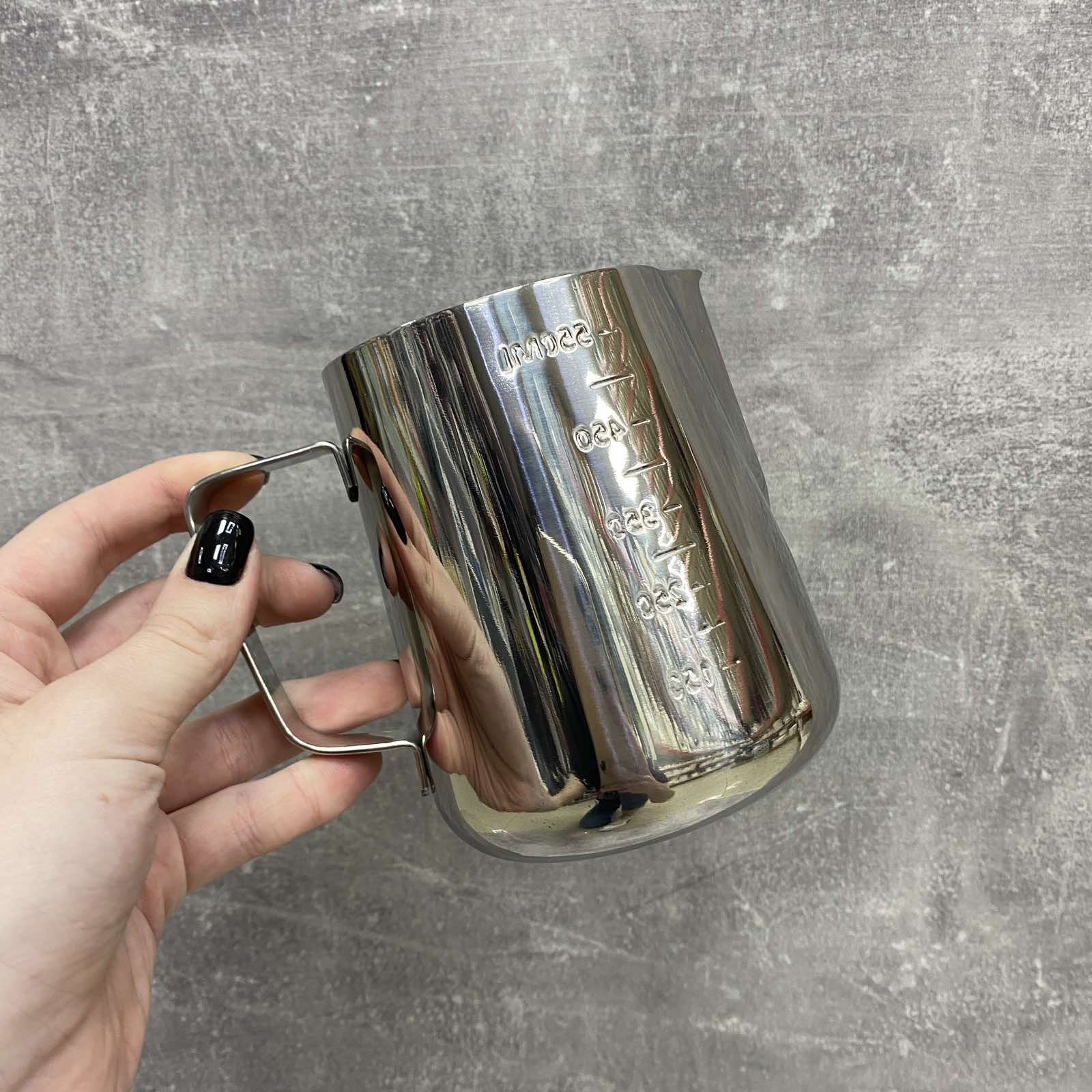 Пітчер-молочник 600 мл Frico FRU-372 Зроблений цей пітчер із полірованої нержавіючої сталі. Носик пітчера зроблений спеціально для зручного наливання молока в чашку, що добре підходить для латте-арт. Таким пітчером зручно малювати. Тонка струмінь дозволяє отримувати дуже точний малюнок. Пітчер (або молочник) – один із головних інструментів бариста. Характеристика: Вид: Пітчер-молочник Матеріал: Нержавіюча сталь Колір: Сталевий Об'єм: 600 мл Призначення: Для молока