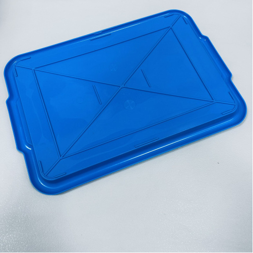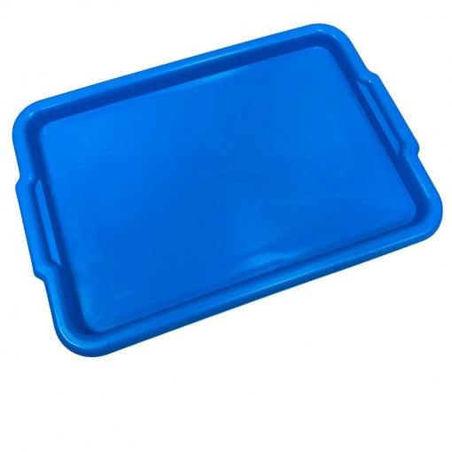 Характеристика: Вид: Піднос Матеріал: Пластик Форма: Прямокутна Розмір: 45*30*1,5 см, робоча частина – 36*24 см Колір: Блакитний